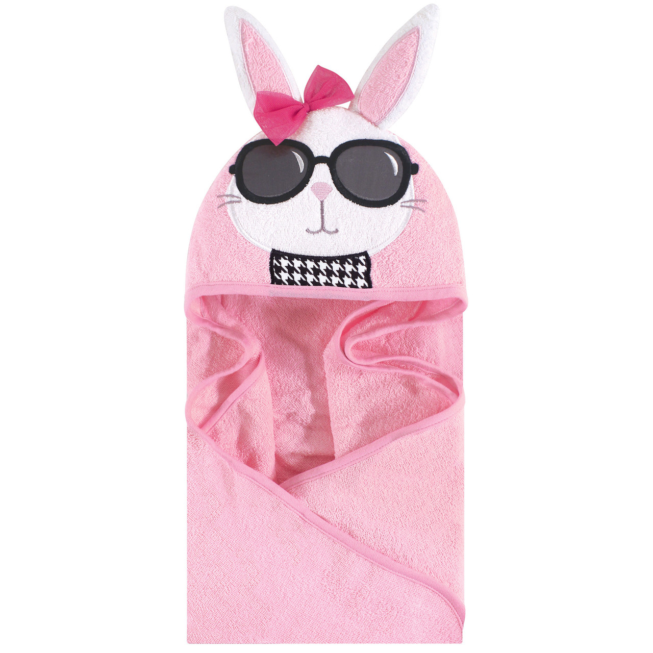 Hudson Baby Cotton Animal Face Hooded Towel, Chic Bunny