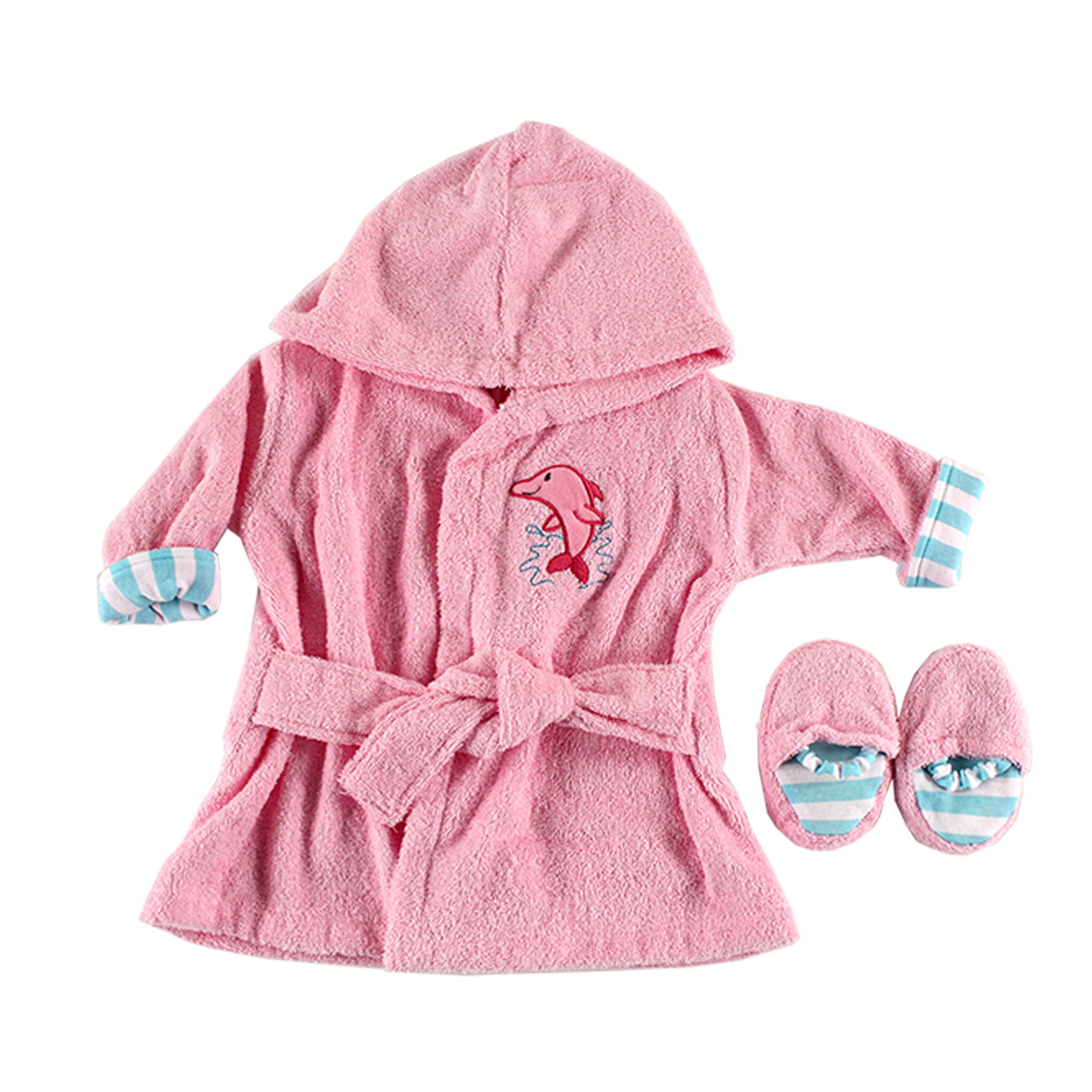 Luvable Friends cotton bath robe and slippers are perfect for your baby after a warm bath. Made with soft, extra absorbent woven terry fabric, our robe and slippers look and feel great on baby's delicate skin. Our robes keep baby dry and warm after bath time.
