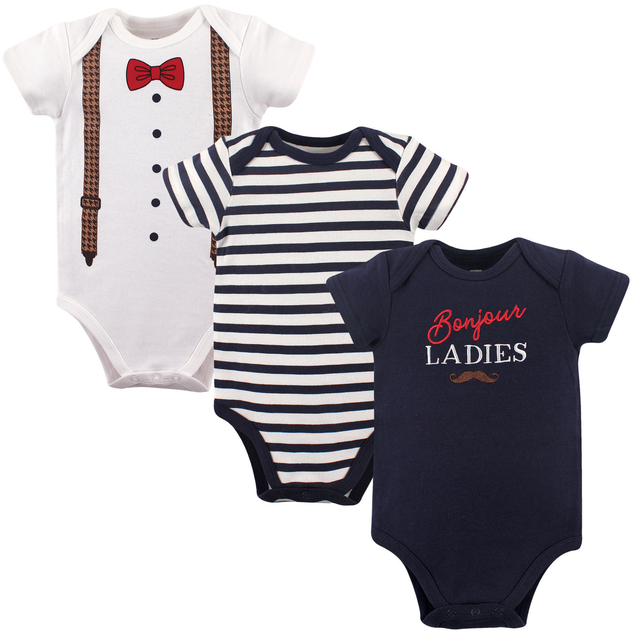 Hudson Baby Cotton Bodysuits, Bonjour 3-Pack
