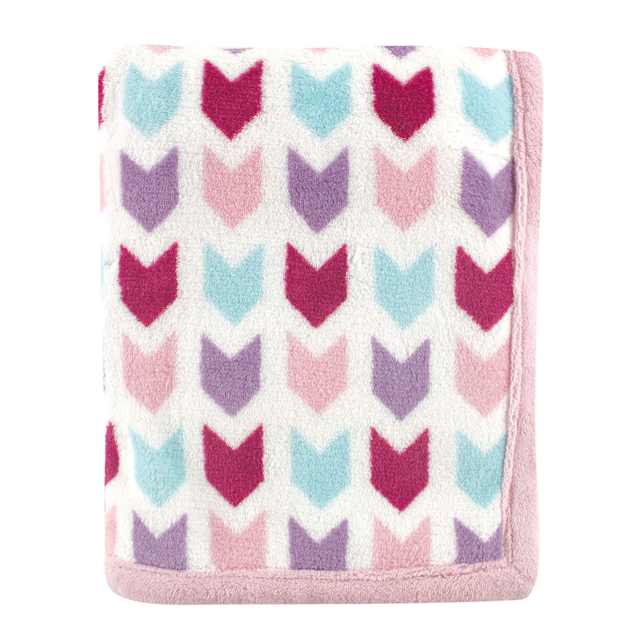 Hudson Baby Chevron Printed Coral Fleece Blankets are sure to become your baby's favorite snuggle-time accessory. Generously sized at 30x40", this blanket is big enough to cover your little one in the crib on chilly nights or to keep them safe from a cool breeze in air conditioning, and small enough for a toddler to tote around as a security blanket. Printed with a vibrant and modern chevron pattern, the blankets feature a solid band of fleece binding around the edges to protect from fraying in the wash. The extra soft 100% polyester fleece features a texture that feels wonderful against baby's delicate skin, and is bound to please even the most picky of babies. The blanket is packaged on a hanger and tied with a ribbon for a quick last minute gift or addition to a gift bag.