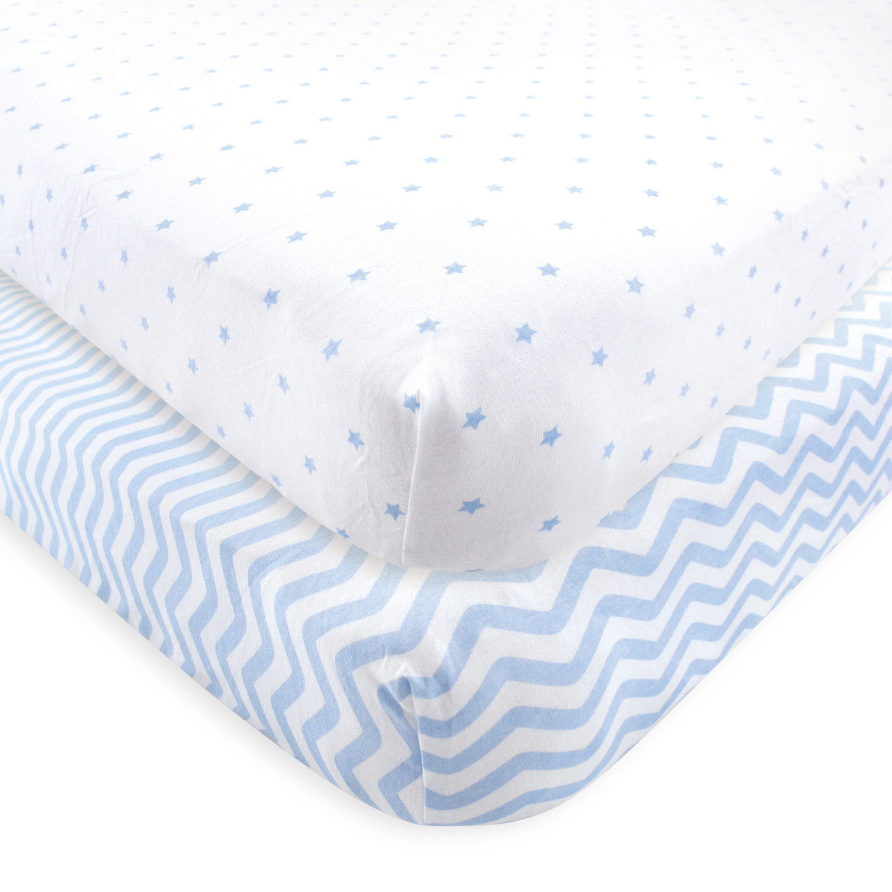 Luvable Friends Fitted Crib Sheet, Blue Chevron Stars