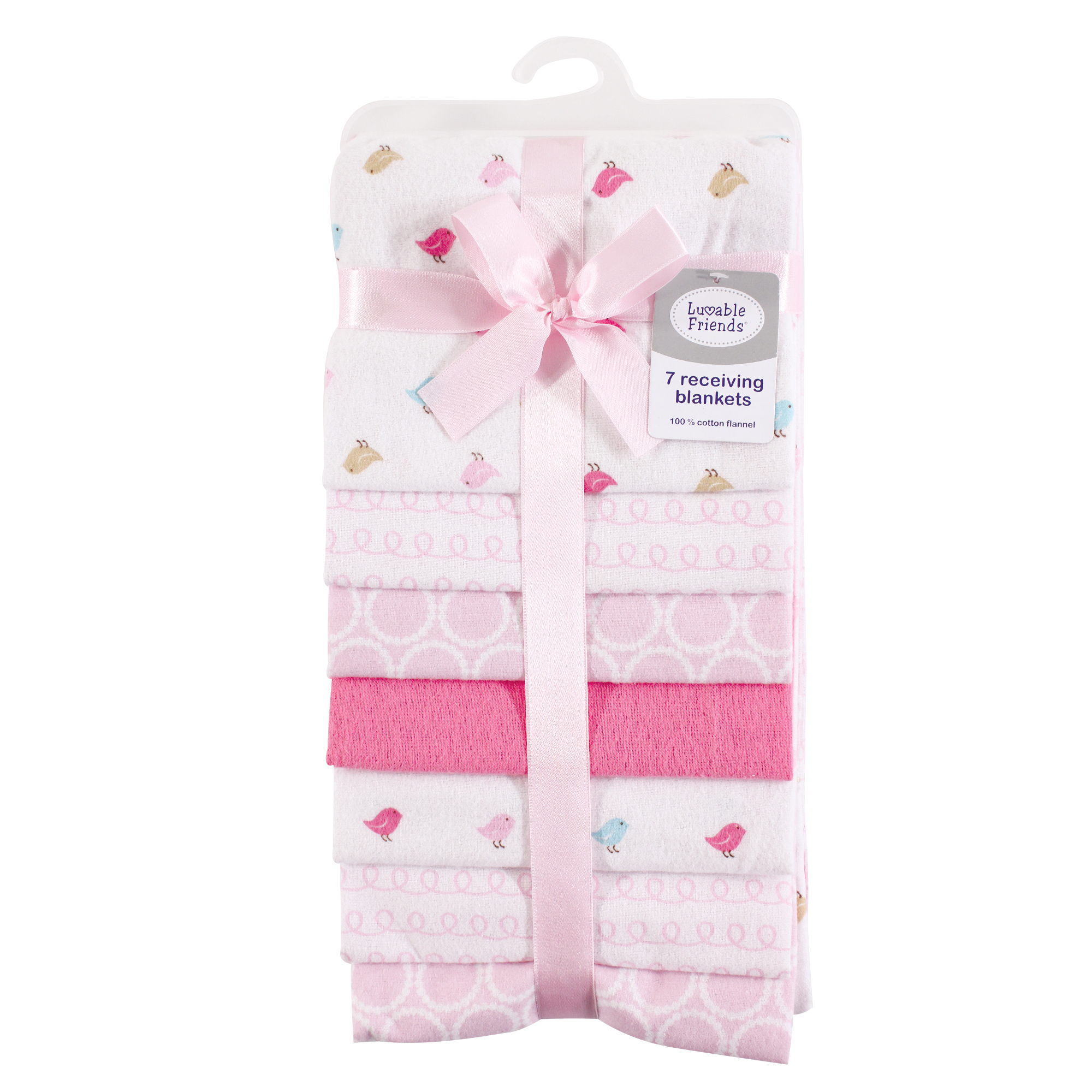 Luvable Friends Cotton Flannel Receiving Blankets, Birdies 7-Pack