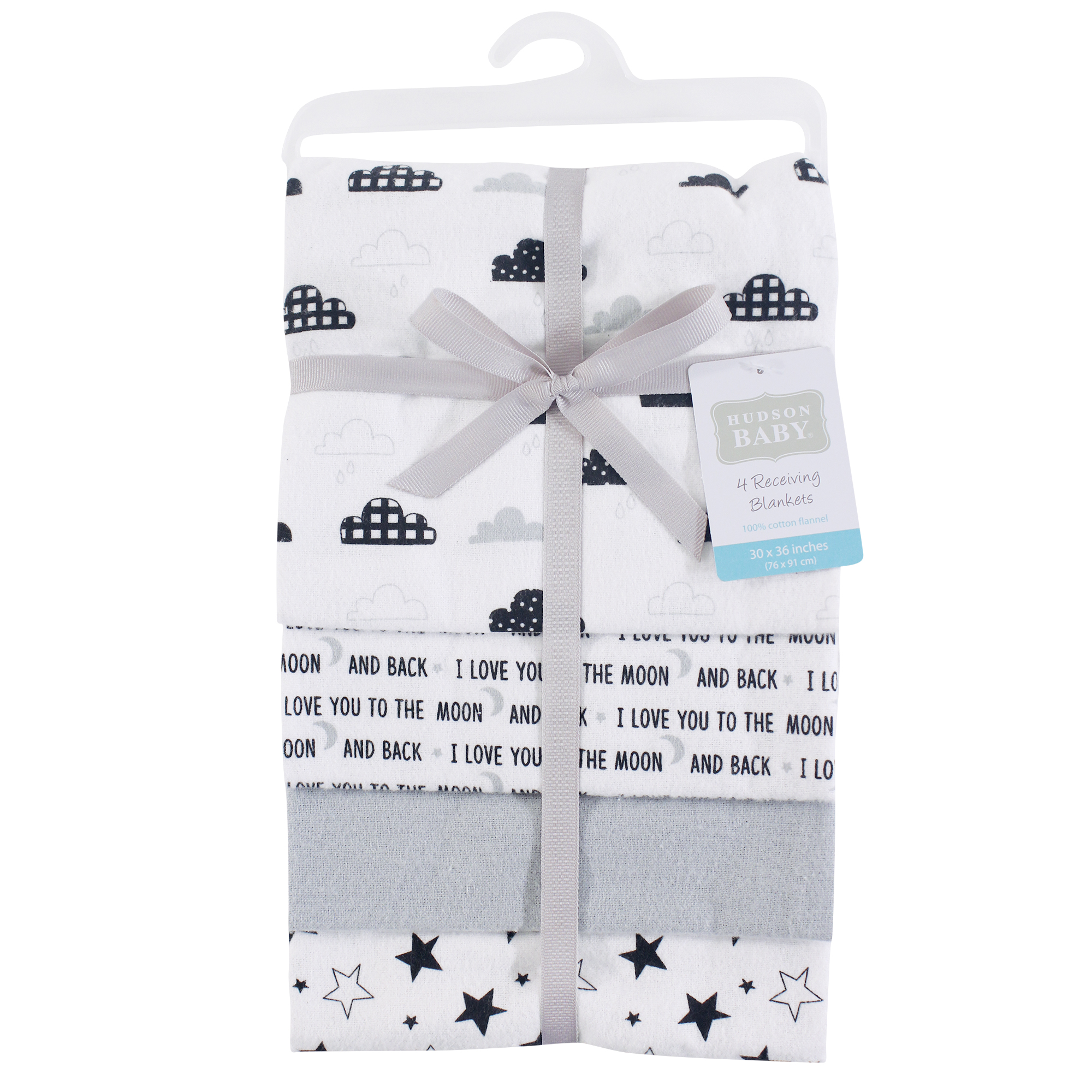 Hudson Baby Cotton Flannel Receiving Blankets, Moon And Back