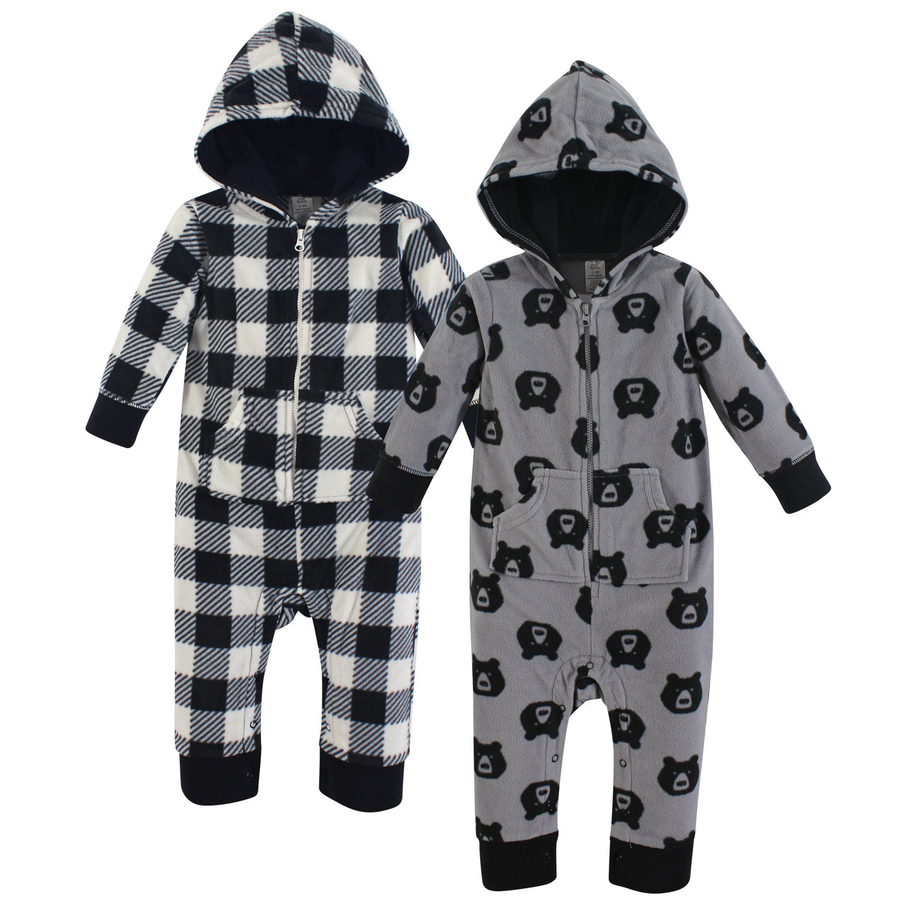 Yoga Sprout fleece jumpsuits are perfect for chilly day outings! Our zip up coveralls come with an attached hood to keep baby warm and snug. Ribbed cuffs stretch to help stay on baby's hands and ankles. These include an adorable pocket to keep little one's hands extra warm! With snaps on crotch and legs and chest zipper, these suits make for a no fuss, easy dressing experience to get outside!