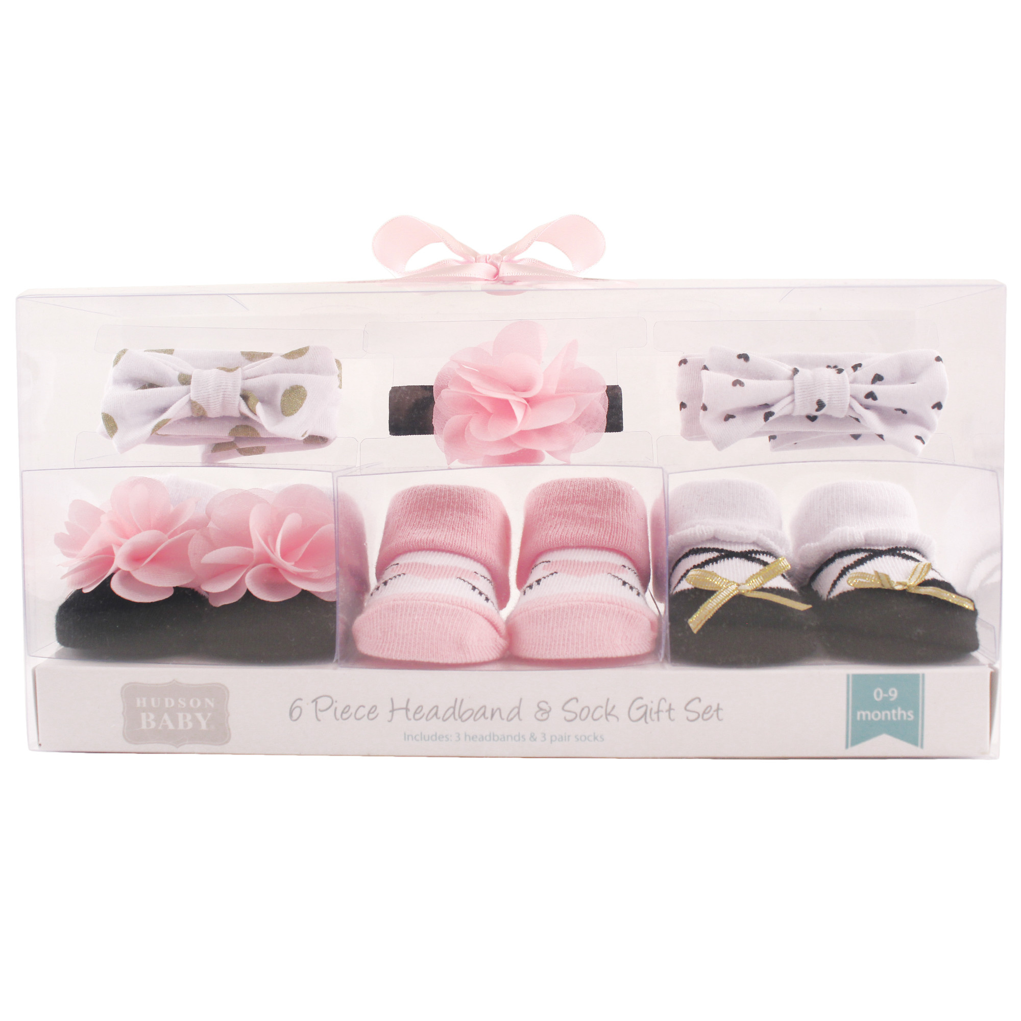 Hudson Baby socks and headband giftset is the perfect accessory set for your little one. Our giftset includes coordinating headbands and socks so your baby is looking fashionable from head to toe. Our headbands and socks are great for dressing up or everyday wear. Our giftset is packaged very nicely and makes a terrific baby shower gift.