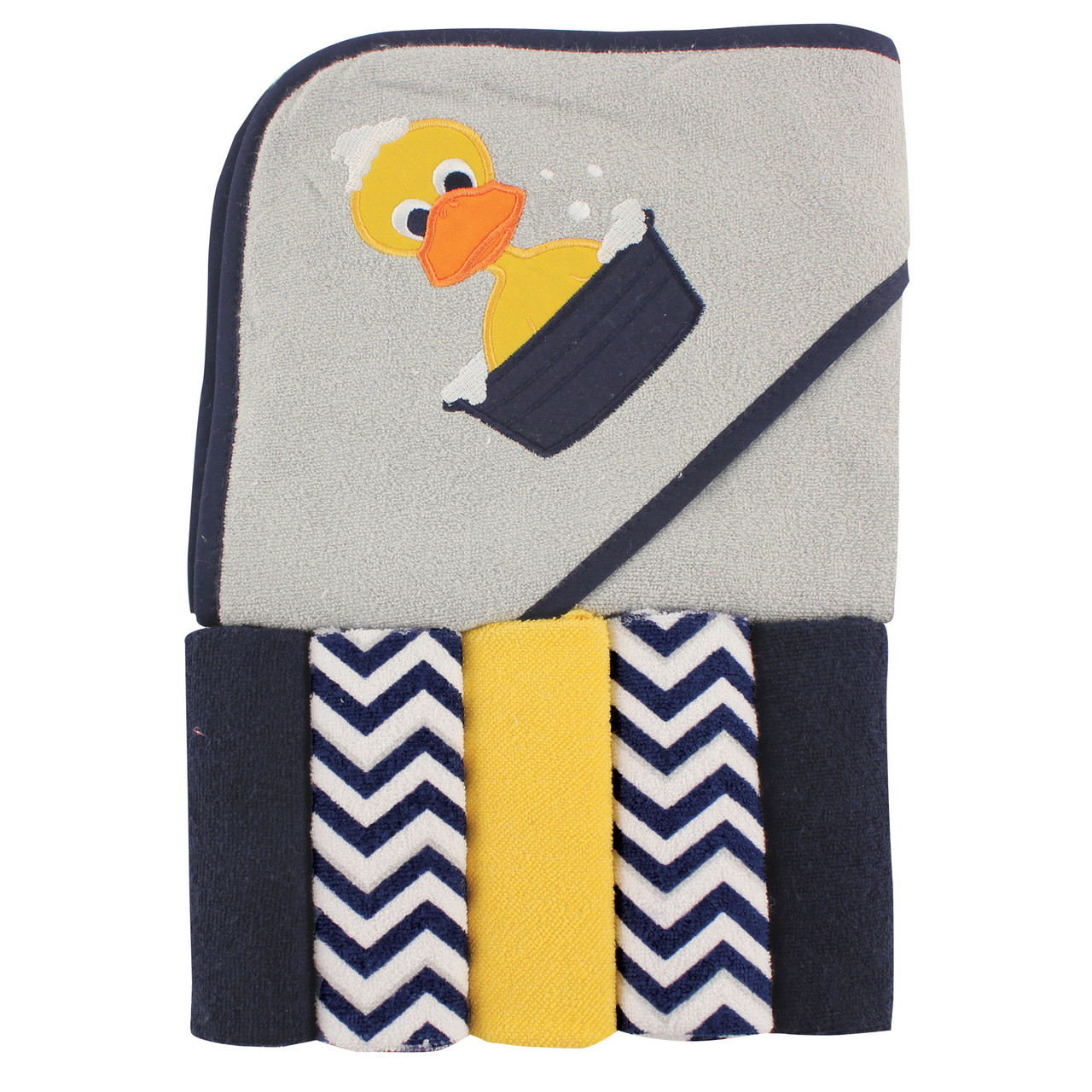 Luvable Friends Hooded Towel with Five Washcloths, Duck