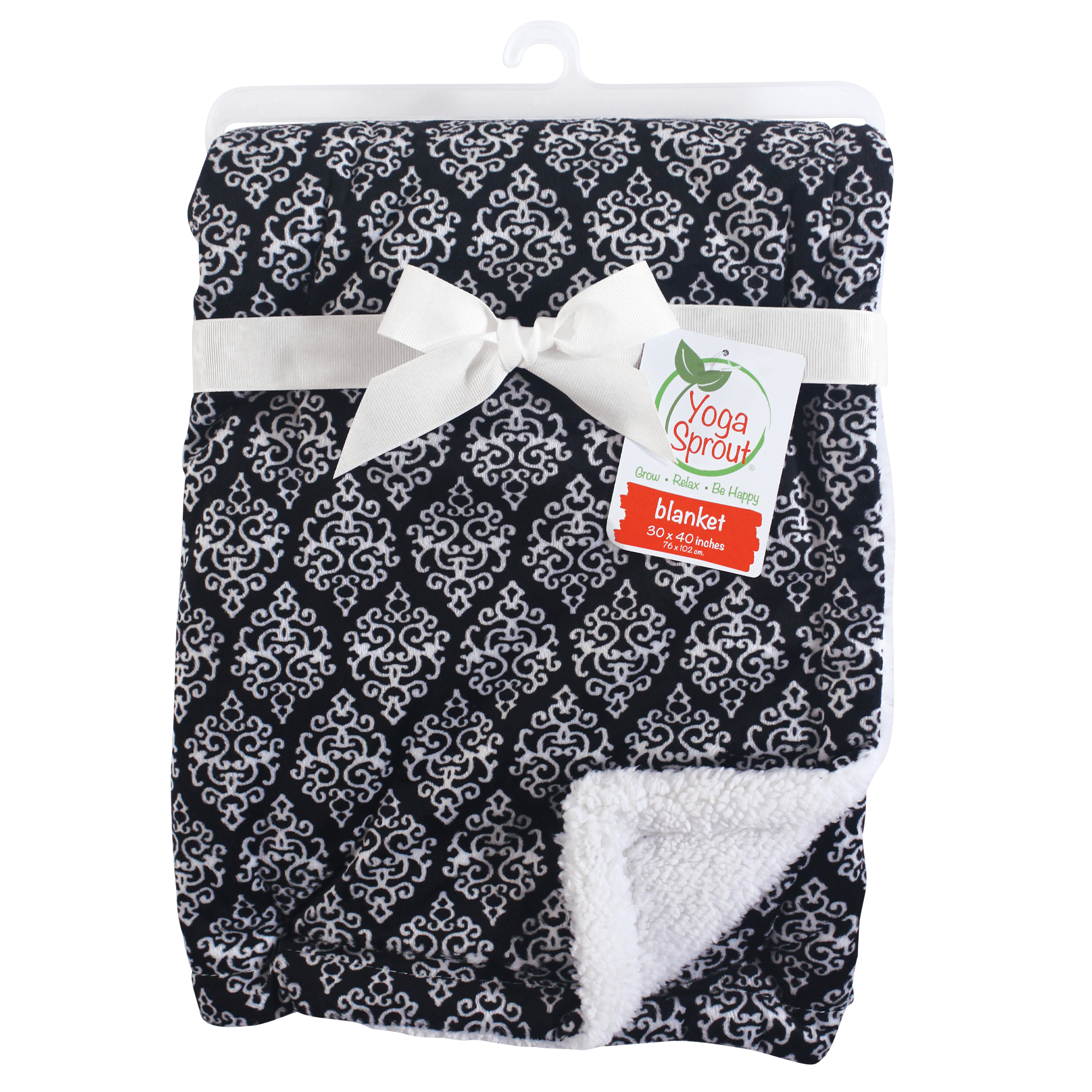 Yoga Sprout Mink and Sherpa Plush Blanket, Damask