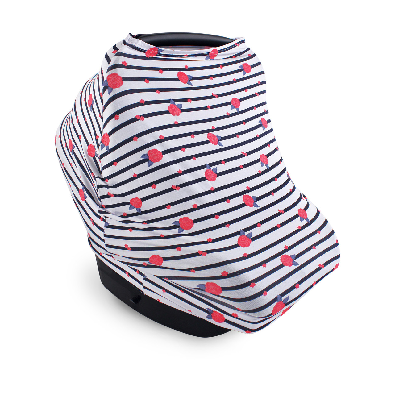 Yoga Sprout multi use car seat canopy is a great canopy to cover all your out and about needs! Primarily used as a car seat cover to protect your little one from the sun, cold air, germs or to cover up for a nap, this canopy be used for many other things. These are perfect for shopping cart covers, nursing covers and public high chair covers! The stretchable and super soft fabric can be stretched over shopping carts and high chairs with the hole available for legs to hang through. Mom can drape around her neck and arm to use as a nursing cover while out and about.