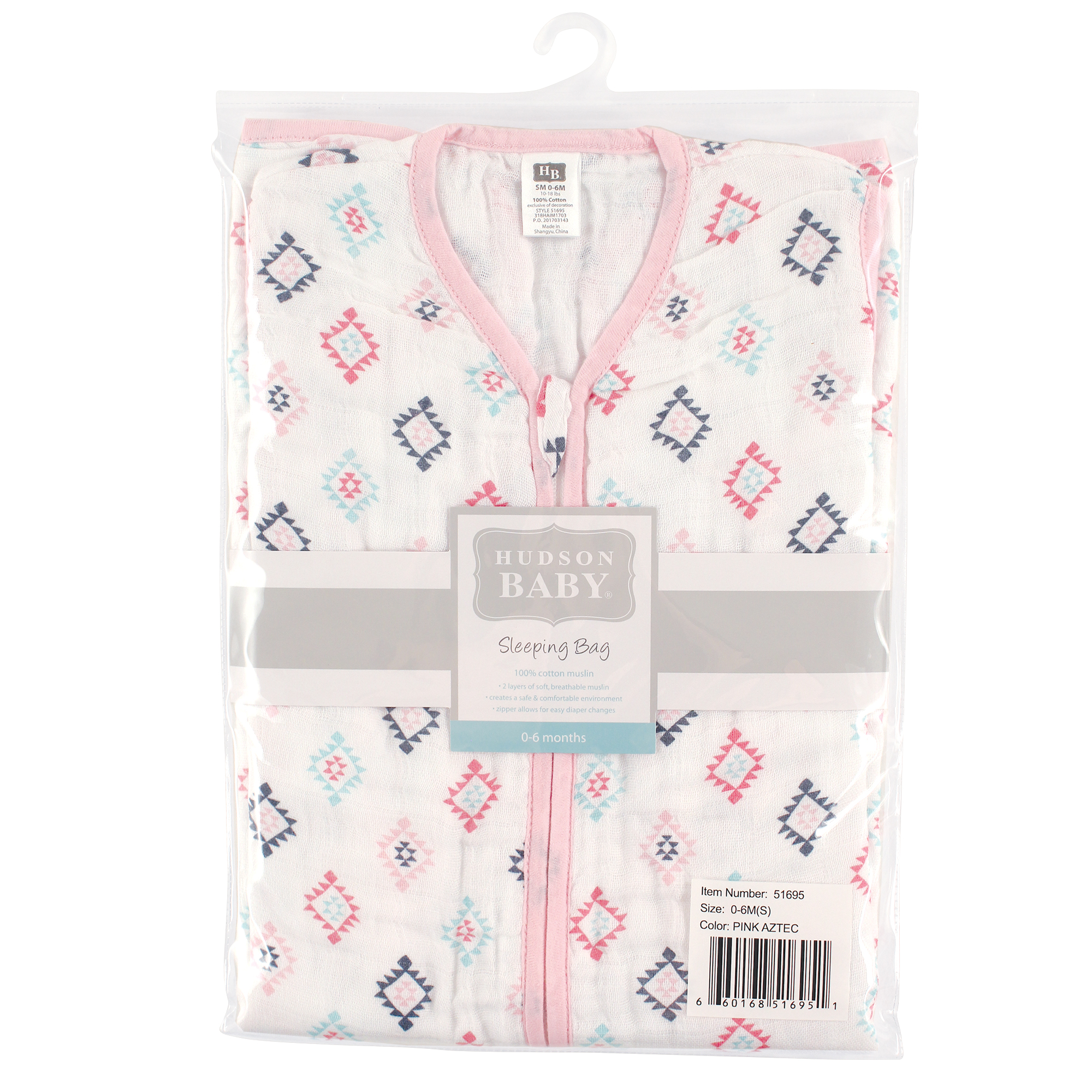 Hudson Baby Muslin Cotton Sleeveless Wearable Sleeping Bag, Sack, Blanket, Pink Aztec