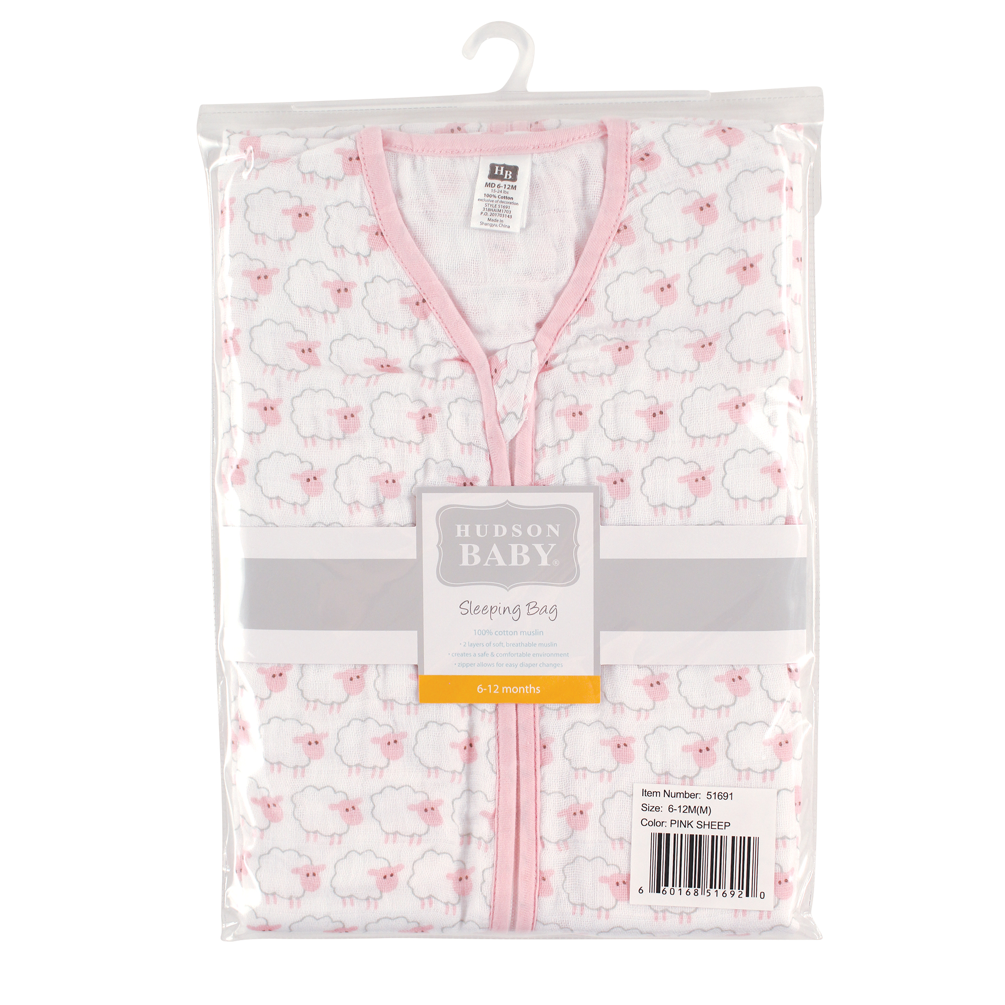 Hudson Baby Muslin Cotton Sleeveless Wearable Sleeping Bag, Sack, Blanket, Pink Sheep