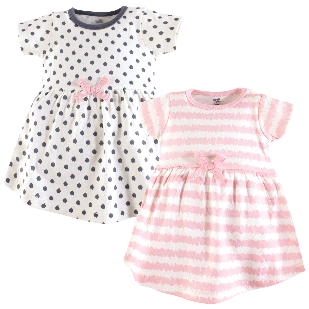 Touched by Nature Organic Cotton Short-Sleeve and Long-Sleeve Dresses, Baby Toddler Pink Gray Scribble Short Sleeve