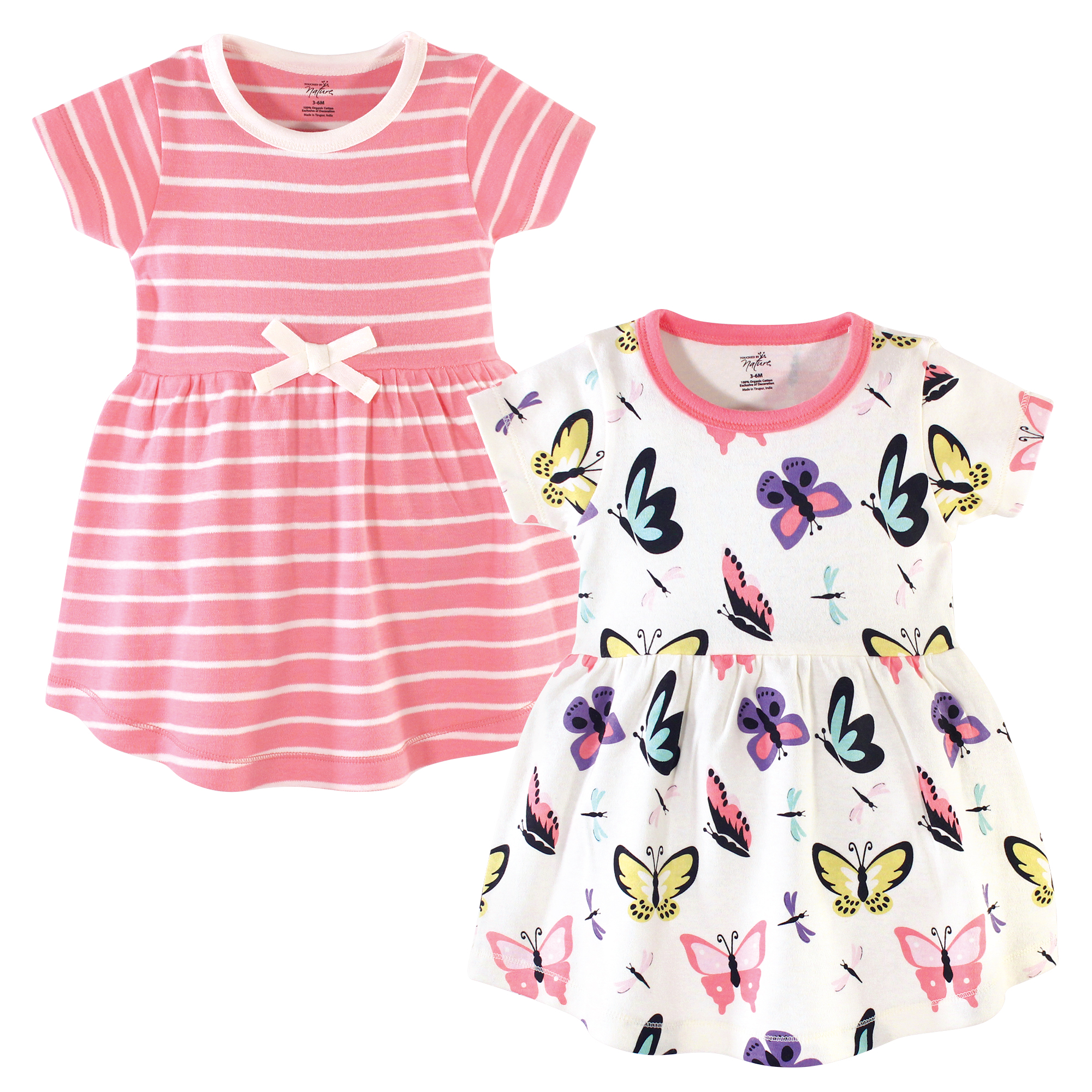 Touched By Nature Organic Cotton Short-Sleeve and Long-Sleeve Dresses, Baby Toddler Butterflies and Dragonflies Short Sleeve