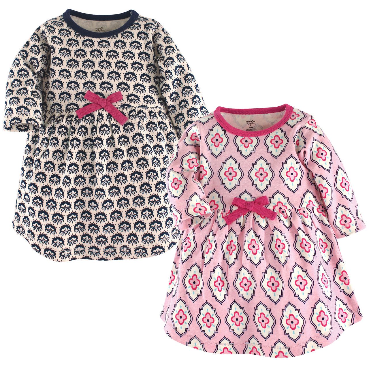 Touched by Nature Organic Cotton Short-Sleeve and Long-Sleeve Dresses, Baby Toddler Trellis Long Sleeve