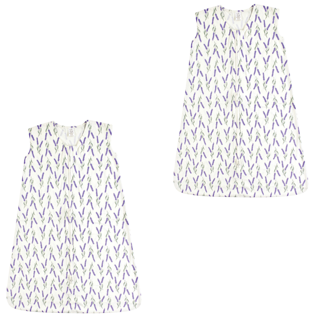 Touched By Nature Organic Cotton Sleeveless Wearable Sleeping Bag, Sack, Blanket, Lavender 2-Pack