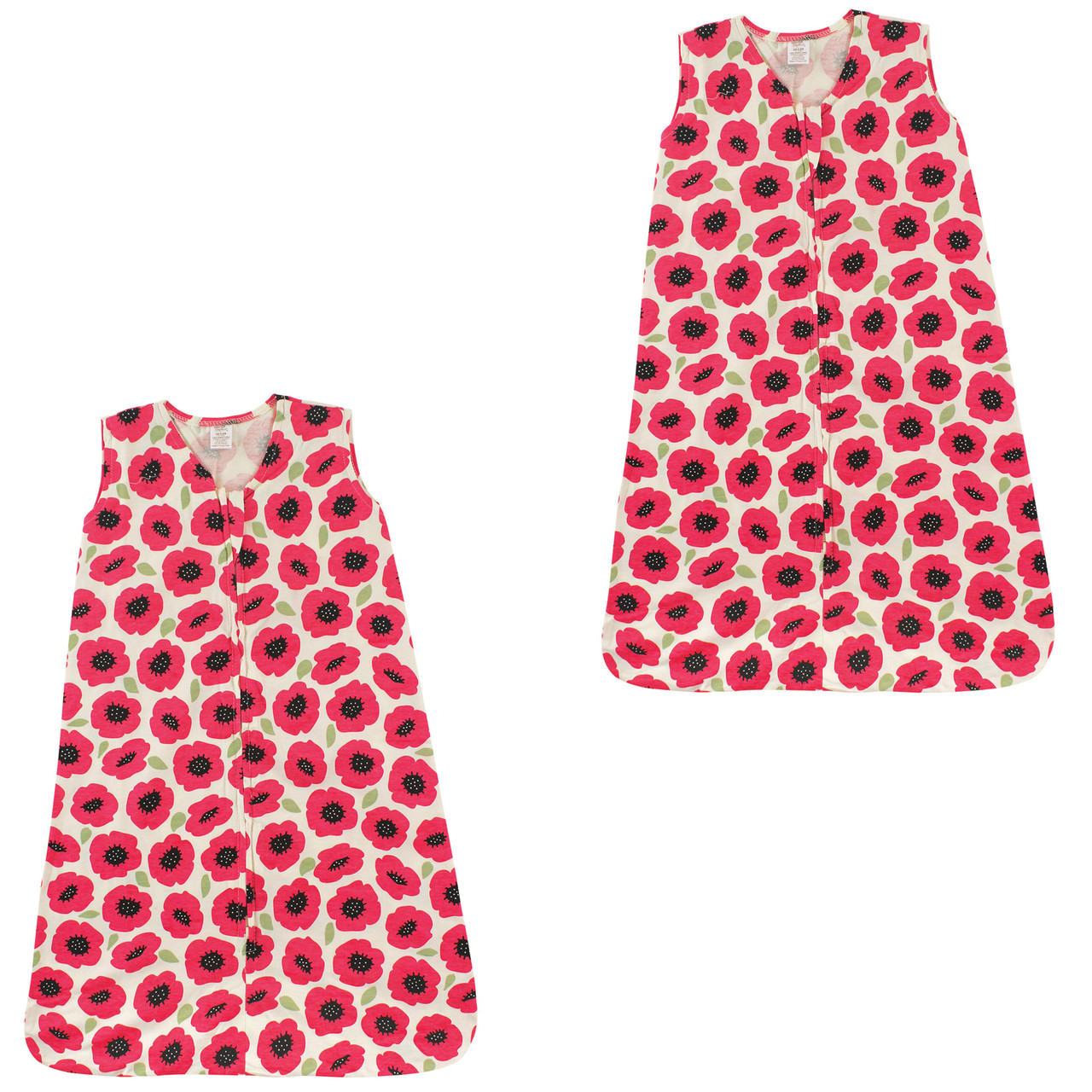 Touched By Nature Organic Cotton Sleeveless Wearable Sleeping Bag, Sack, Blanket, Poppy 2-Pack