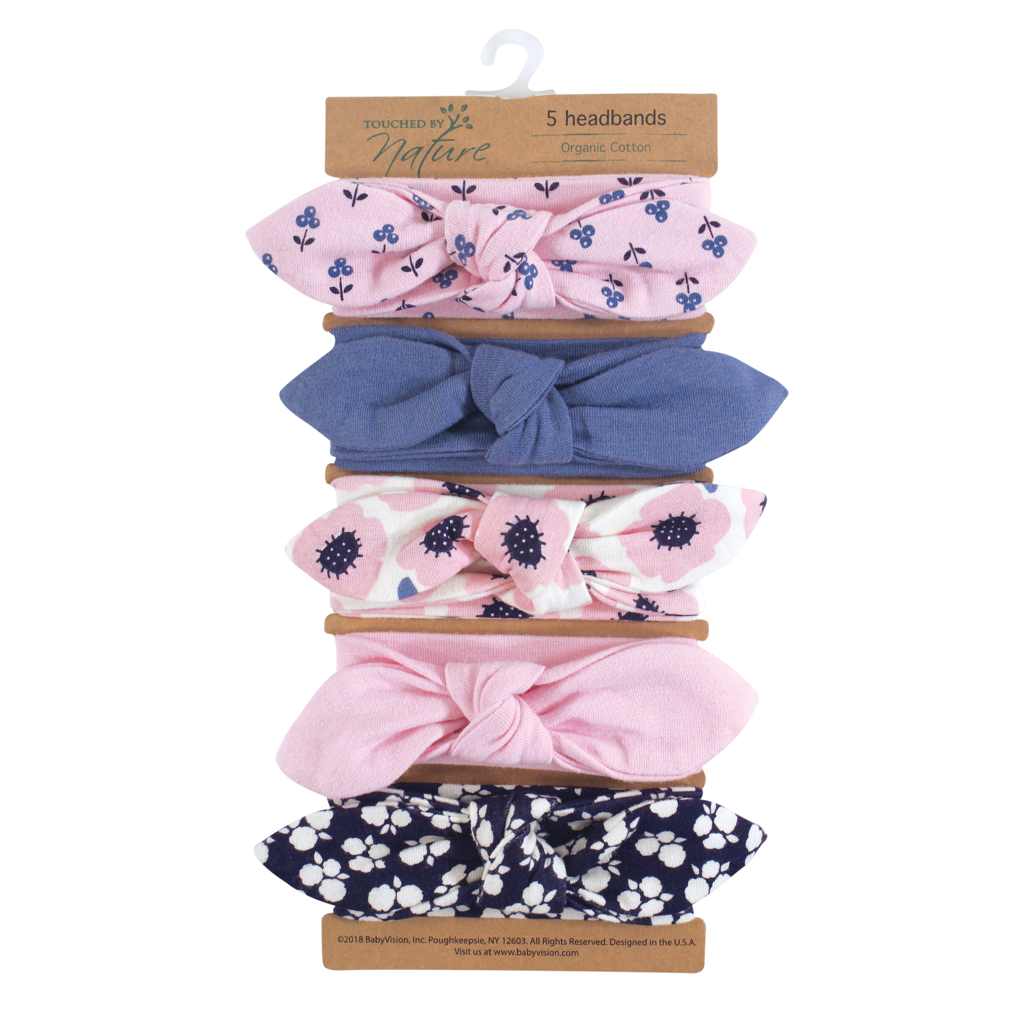 Touched by Nature organic cotton headbands are made with 92 percent organic cotton and 8 percent spandex and are the most stylish multi-pack headband set for baby. Featuring adorable all-over prints and solids, our headbands are made with premium fabrics that are soft and comfortable on your baby's head and will stay on. Make dress time more fun with our organic headbands. Touched by Nature is an organic cotton brand, focused on developing products made from premium organic cotton fabrics. Organic cotton feels super soft on skin as the fibers are natural and breathable. Organic cotton is made without the use of synthetic pesticides and fertilizers, so it is an environmentally friendly alternative compared to traditional farming methods.