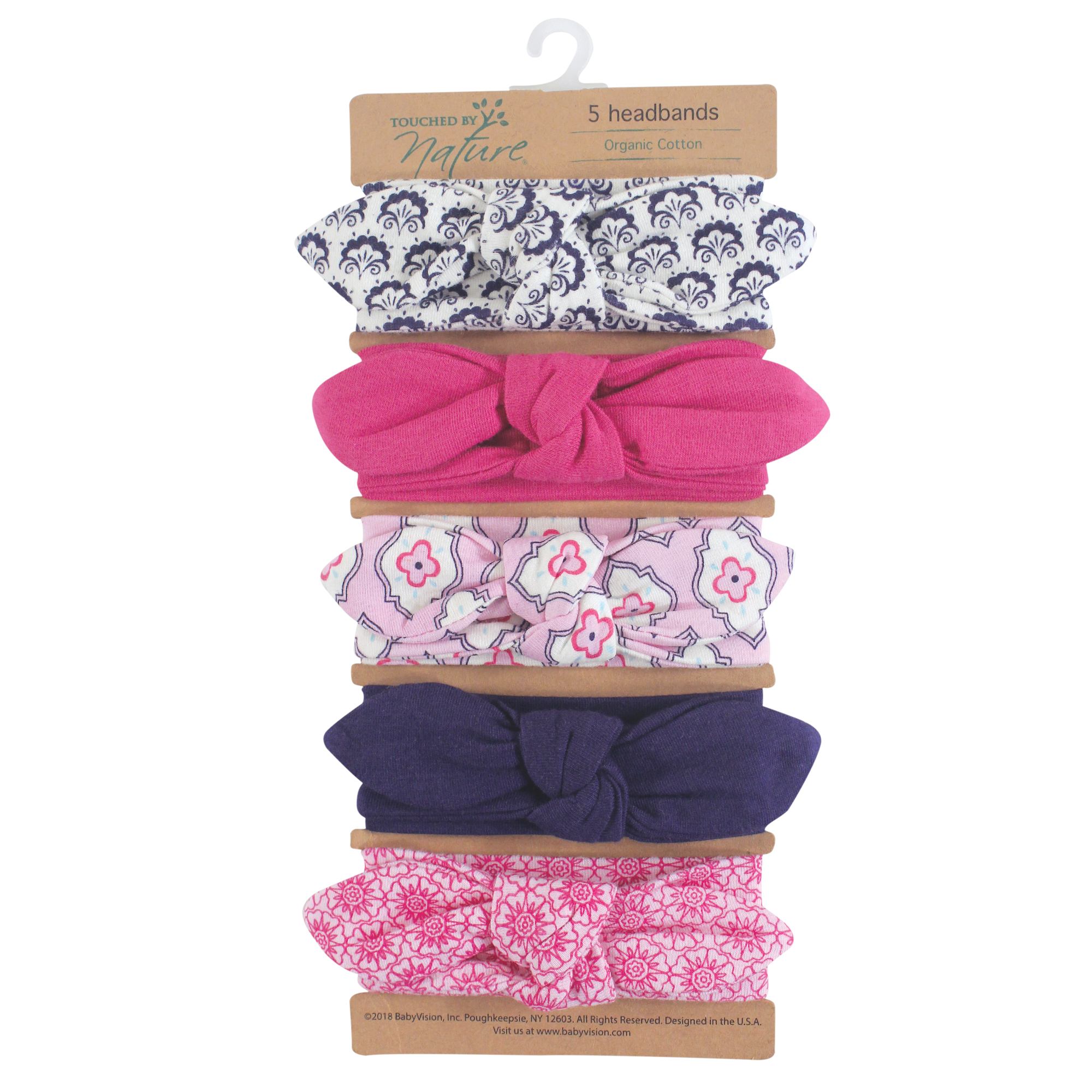 Touched by Nature organic cotton headbands are made with 92 percent organic cotton and 8 percent spandex and are the most stylish multi-pack headband set for baby. Featuring adorable all-over prints and solids, our headbands are made with premium fabrics that are soft and comfortable on your baby's head and will stay on. Make dress time more fun with our organic headbands. Touched by Nature is an organic cotton brand, focused on developing products made from premium organic cotton fabrics. Organic cotton feels super soft on skin as the fibers are natural and breathable. Organic cotton is made without the use of synthetic pesticides and fertilizers, so it is an environmentally friendly alternative compared to traditional farming methods.