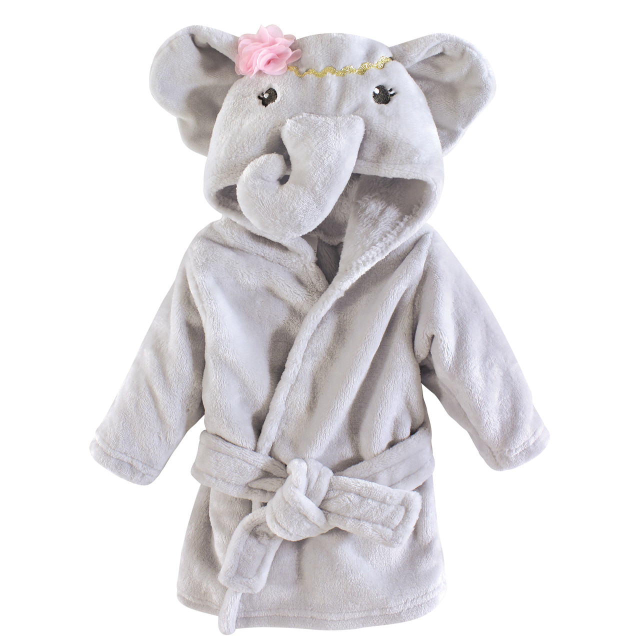 Little Treasure plush bathrobe offers a cozy way to warm up from bath time or around the house. Hooded bathrobe offers baby extra warmth. Made of super soft plush fabric, this robe is so warm and cozy. With cute animal character, your babe will love dressing up in this. Added waist tie to keep robe closed. Fits 0-9 Months