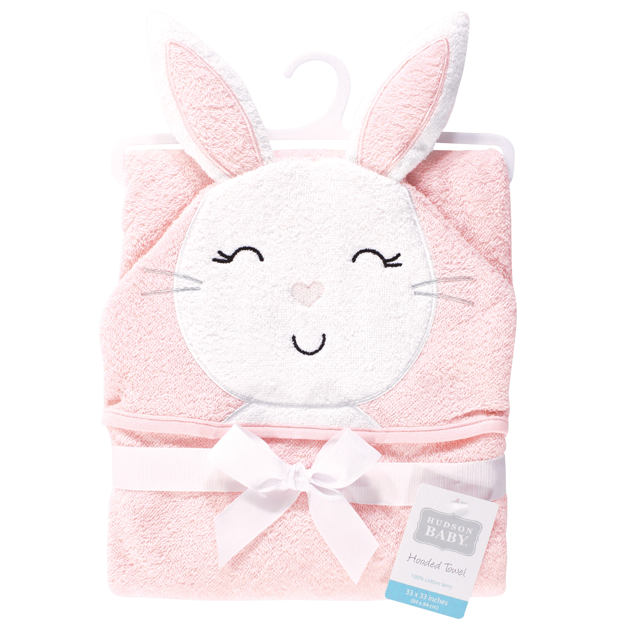 Hudson Baby animal face hooded towels are made of 100% woven cotton terry and are available in a variety of adorable animal face options. Our hooded towels are more than generously sized at 33x33 inches to cover baby head to toe after bath or swim time. Our fun designs and large towels are perfect for baby and toddlers.