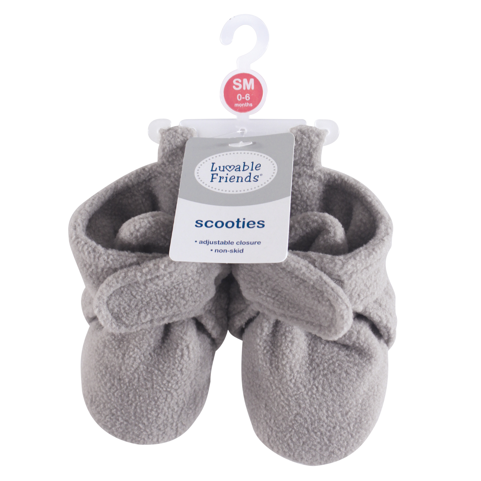 Luvable Friends fleece booties are comfortable, cozy baby booties made with fleece material that will keep your little one's feet warm and comfortable. Our booties wrap around your baby's foot and fasten in the front with a velcro closure, so they are easy to put on, fasten and stay on. Our fleece booties feature non-skid soles to prevent your baby from slipping and falling when they start to walk and run.