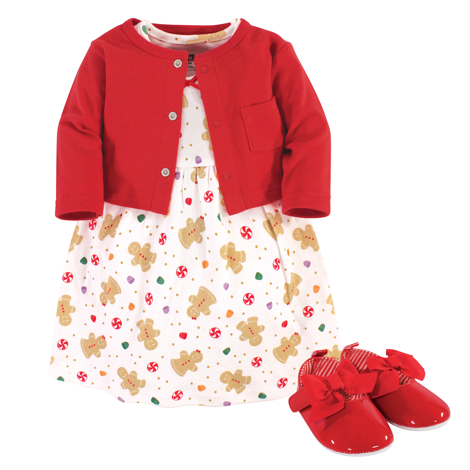 Hudson Baby Cotton Dress, Cardigan and Shoe Set, Sugar Spice