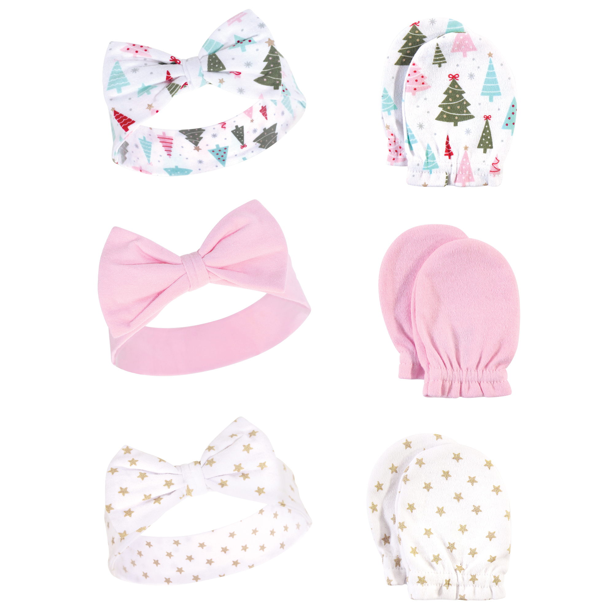 Hudson Baby Cotton Headband and Scratch Mitten Set, Sparkle Trees