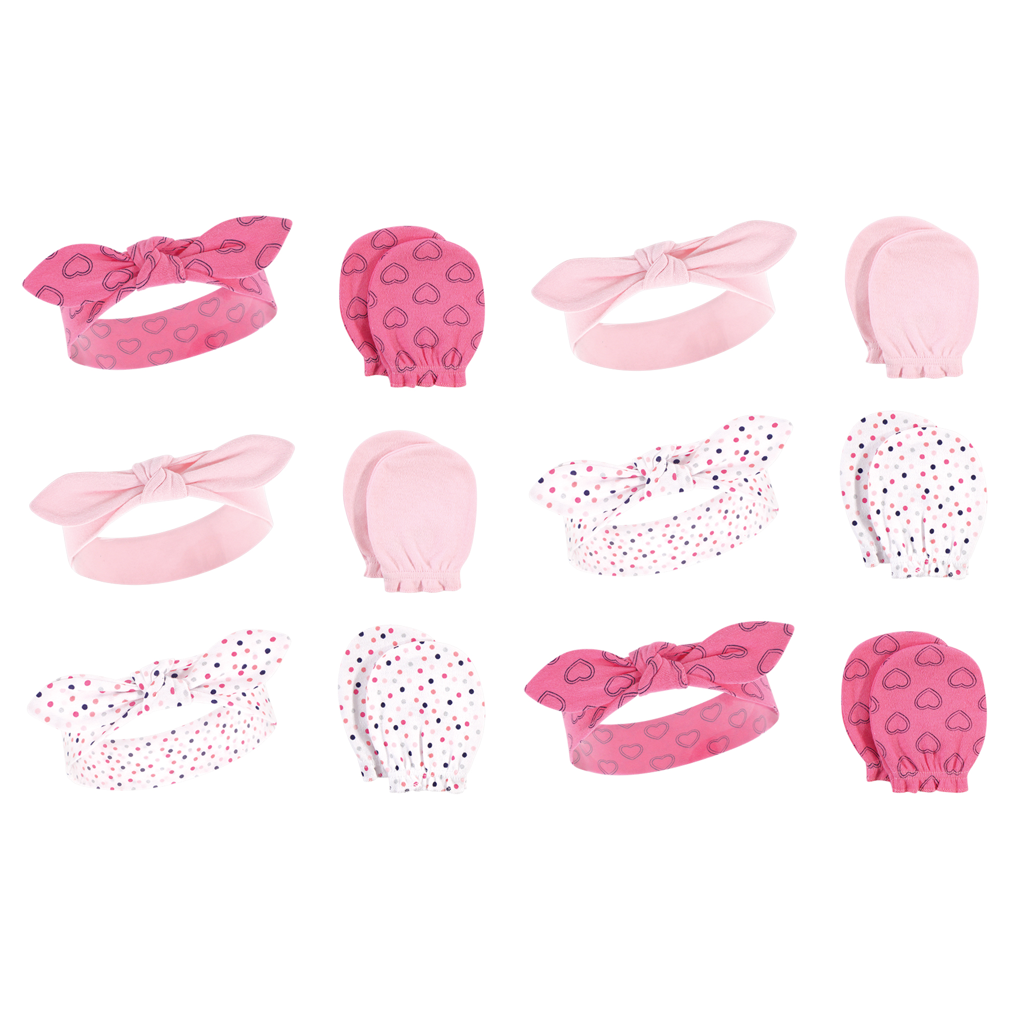 Hudson Baby 12Pc Headband and Scratch Mitten Set, Navy Hearts