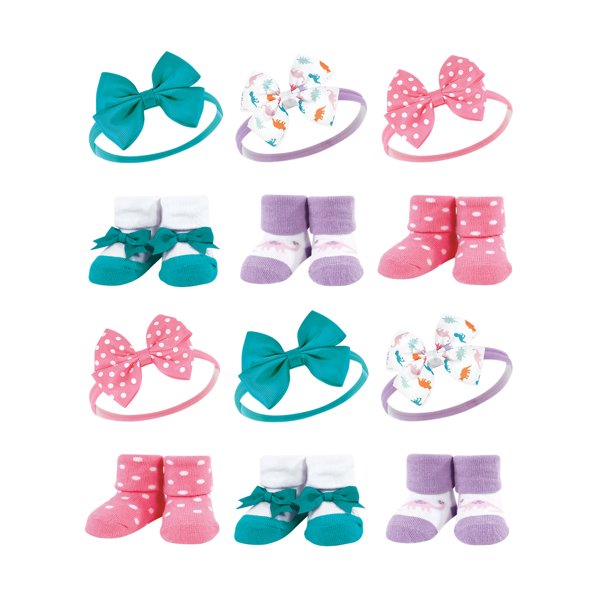 Hudson Baby 12Pc Headband and Socks Giftset, Dinosaurs