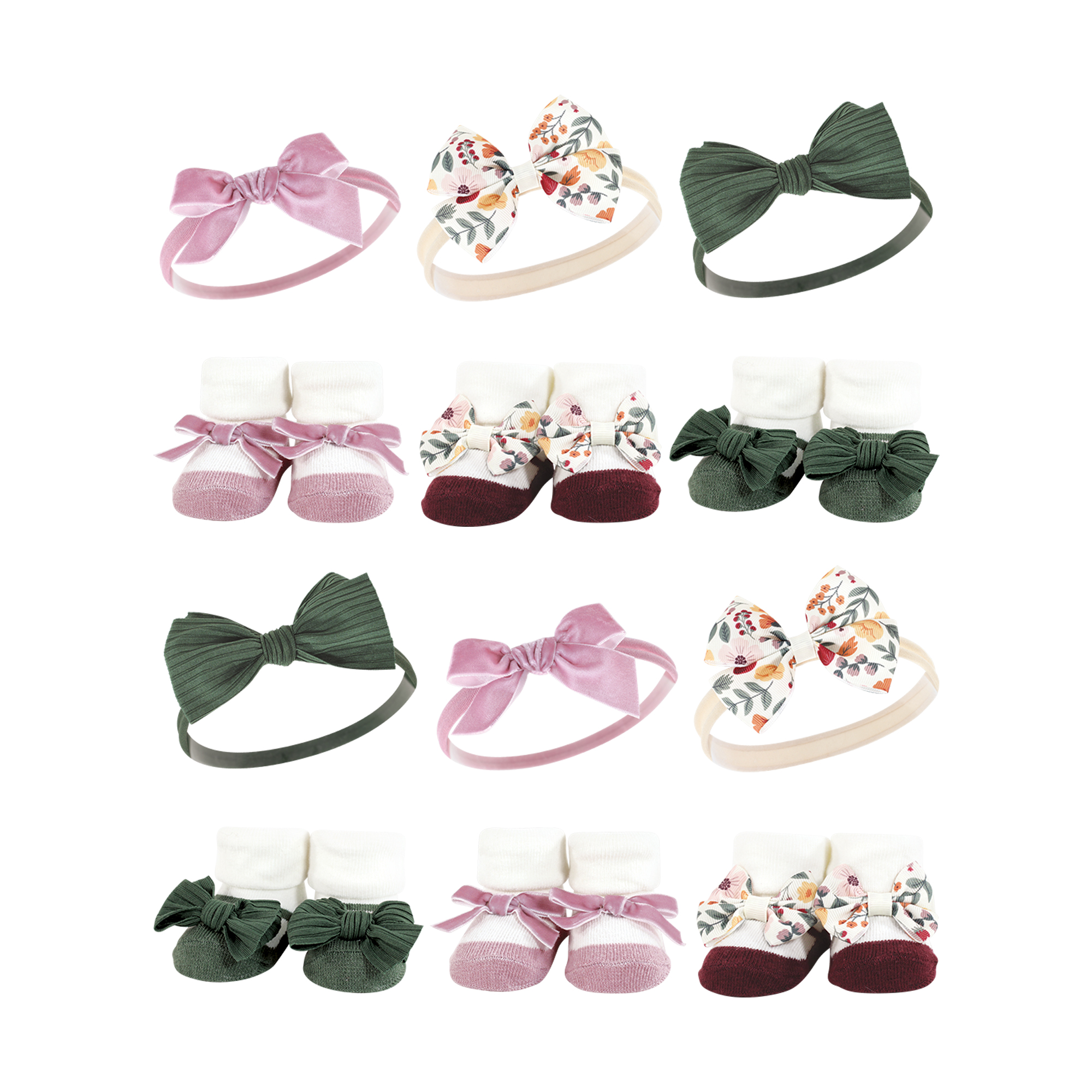 Hudson Baby 12Pc Headband and Socks Giftset, Fall Botanical