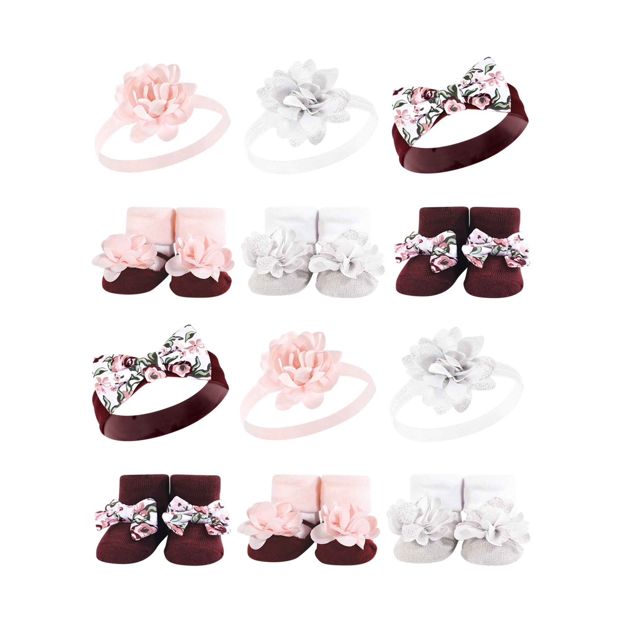 Hudson Baby 12Pc Headband and Socks Giftset, Pink Burgundy