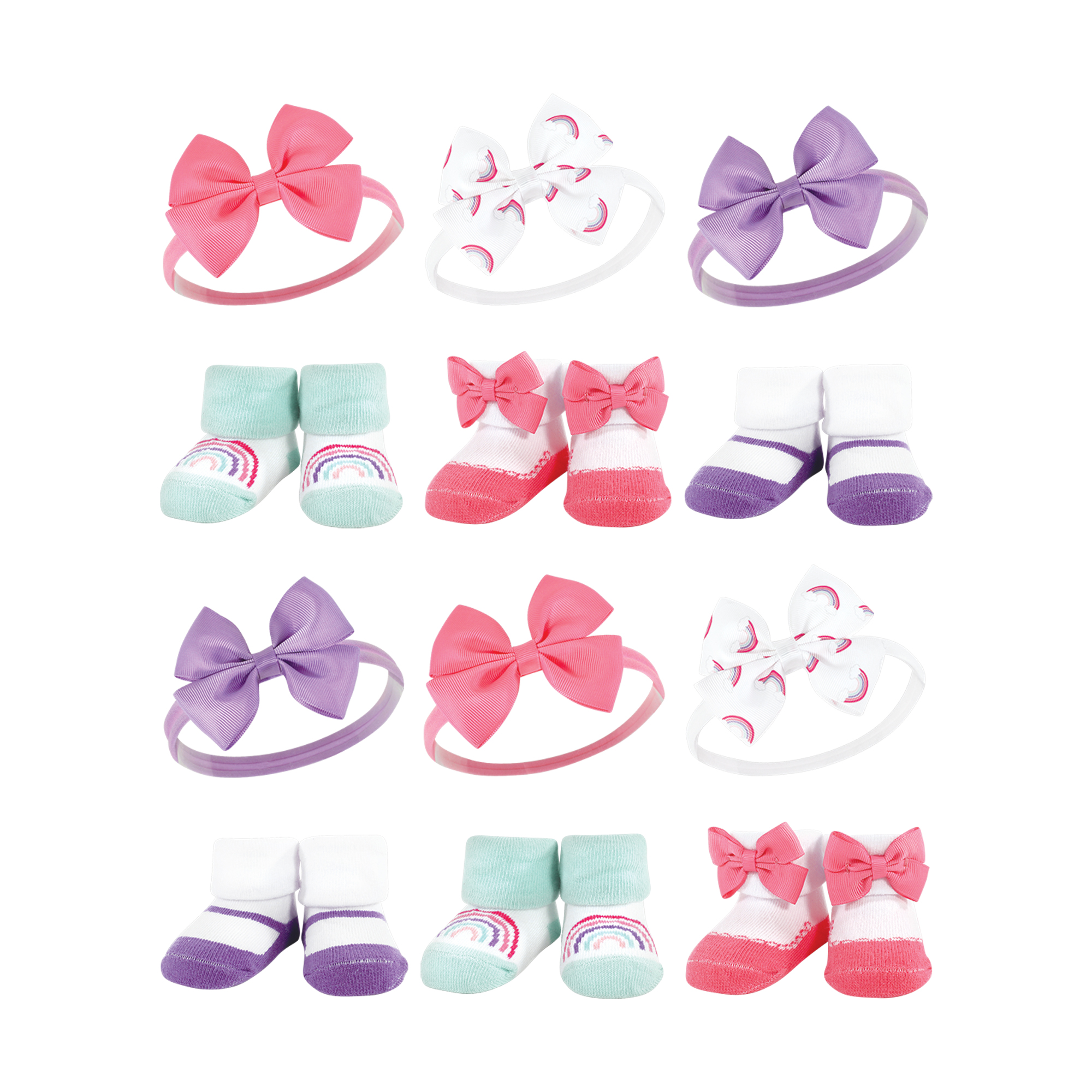 Hudson Baby 12Pc Headband and Socks Giftset, Purple Rainbow