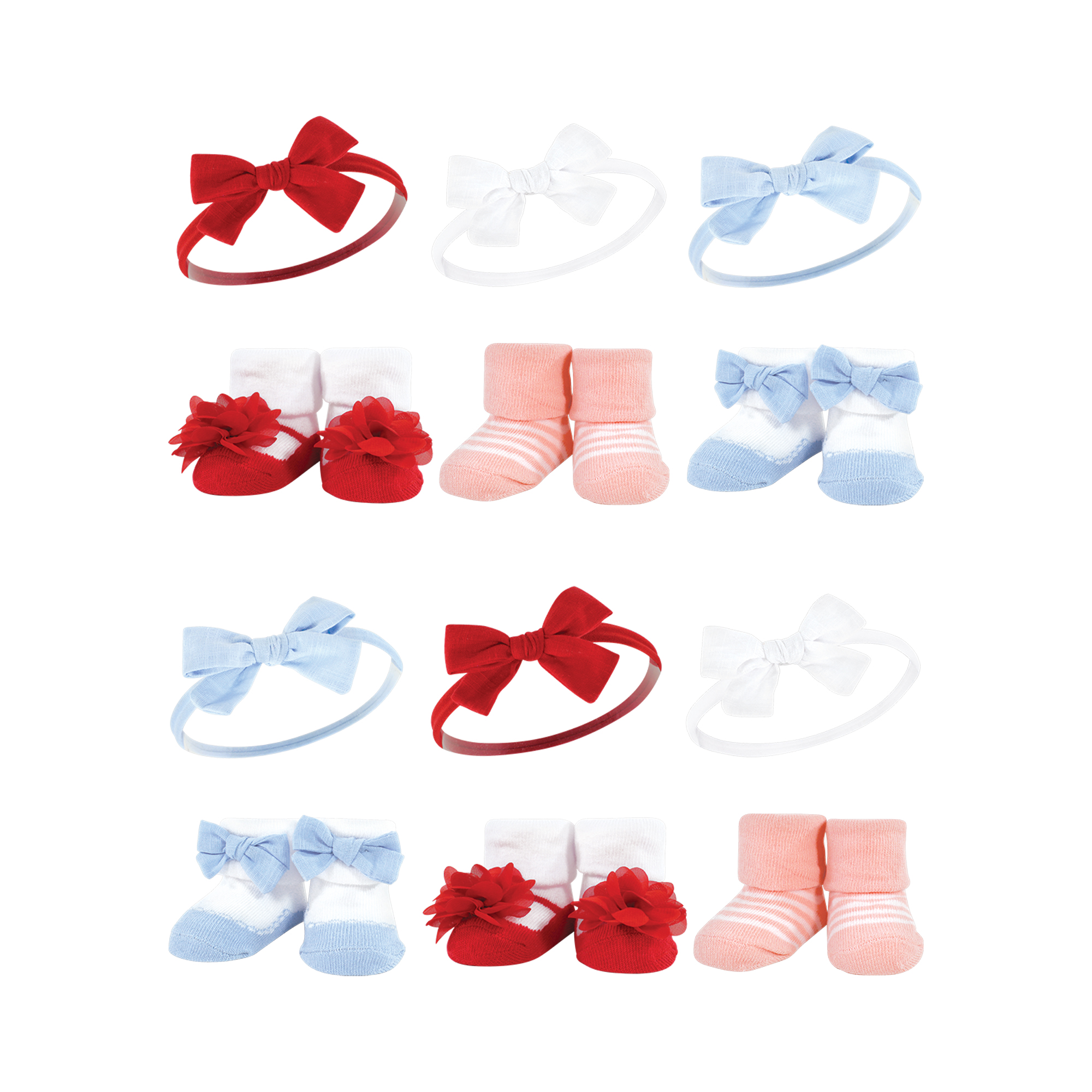 - Set includes coordinating headbands and socks