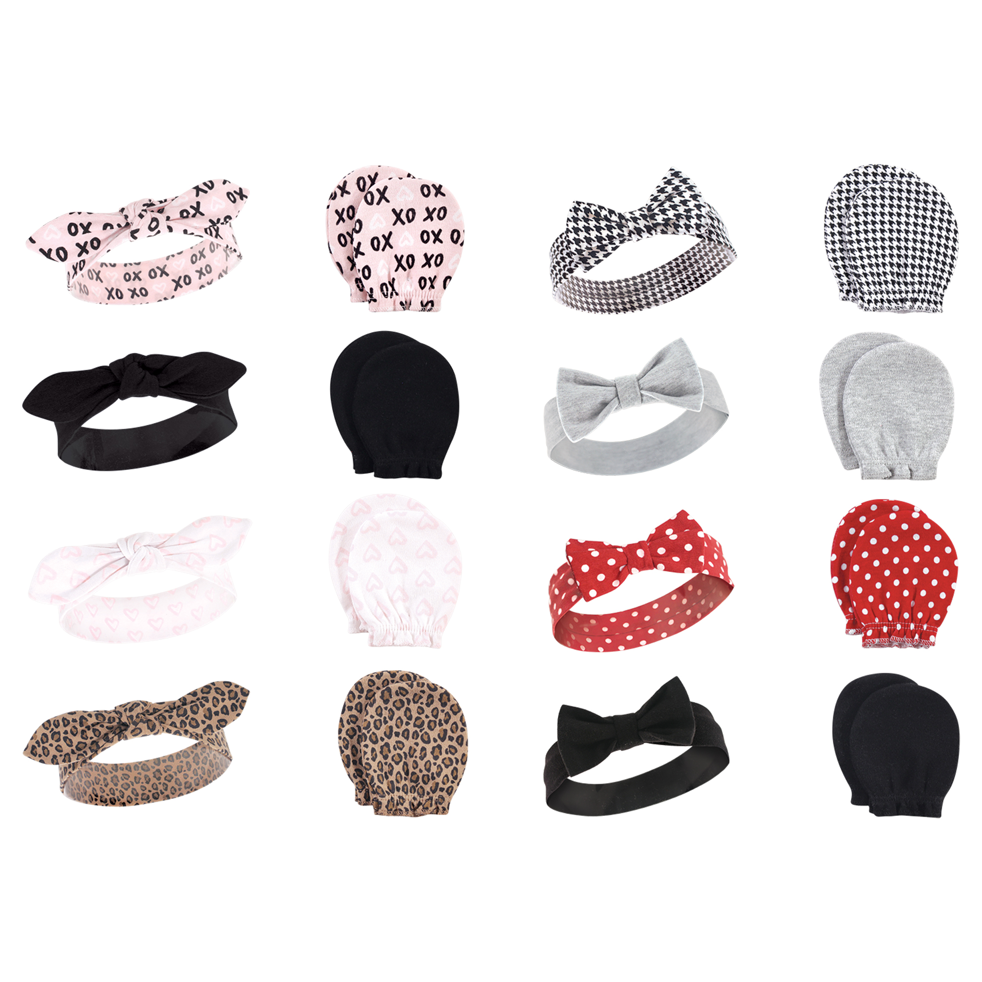 - Set includes coordinating headbands and scratch mittens