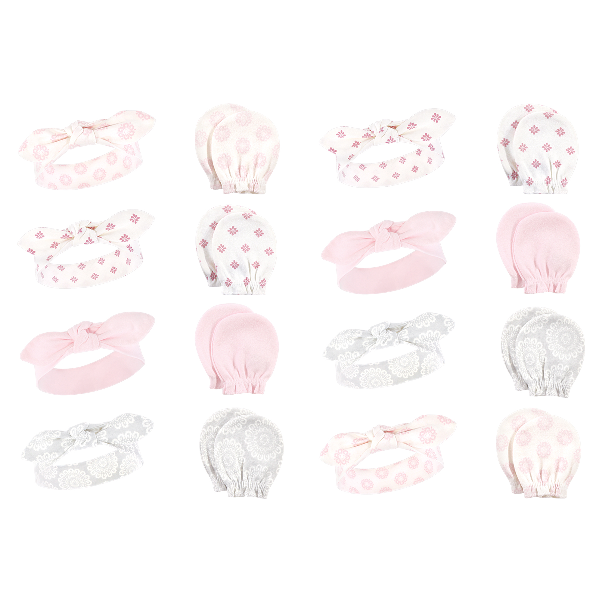 Hudson Baby 16Pc Headband and Scratch Mitten Set, Lace Medallion