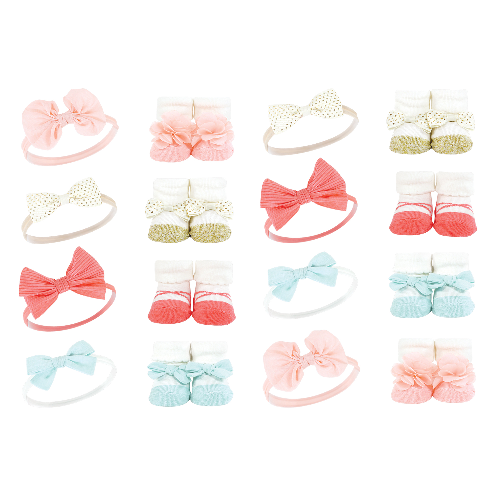 Hudson Baby 16Pc Headband and Socks Giftset, Coral Gold