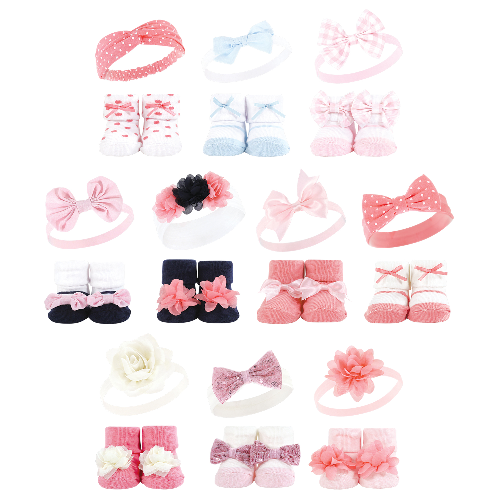 Hudson Baby 20Pc Headband and Socks Giftset, Pink Blue Pink Gray