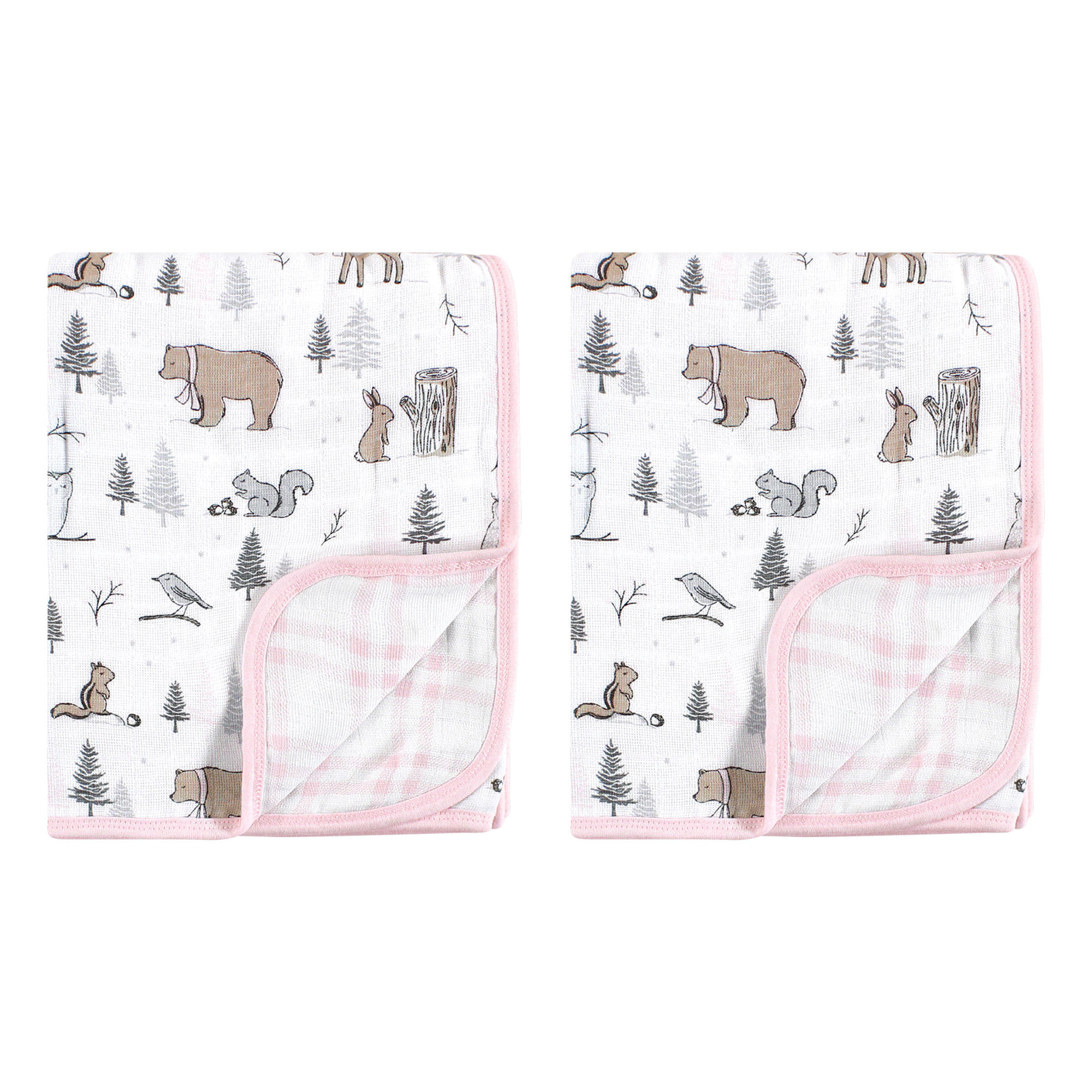 Hudson Baby offers premium quality, stylish baby apparel and products at affordable prices. Our muslin tranquility blankets feature beautiful prints on four layers of lightweight, 100% quilted cotton muslin. Super soft and breathable, your little one will feel secure and safe without being too hot or uncomfortable while the extra weight soothes and comforts your baby. Our generously sized blankets make great stroller covers or nursing covers as well at 46x46 inches. Each arrives folded and tied with a ribbon, ready to wrap or drop into a gift bag.