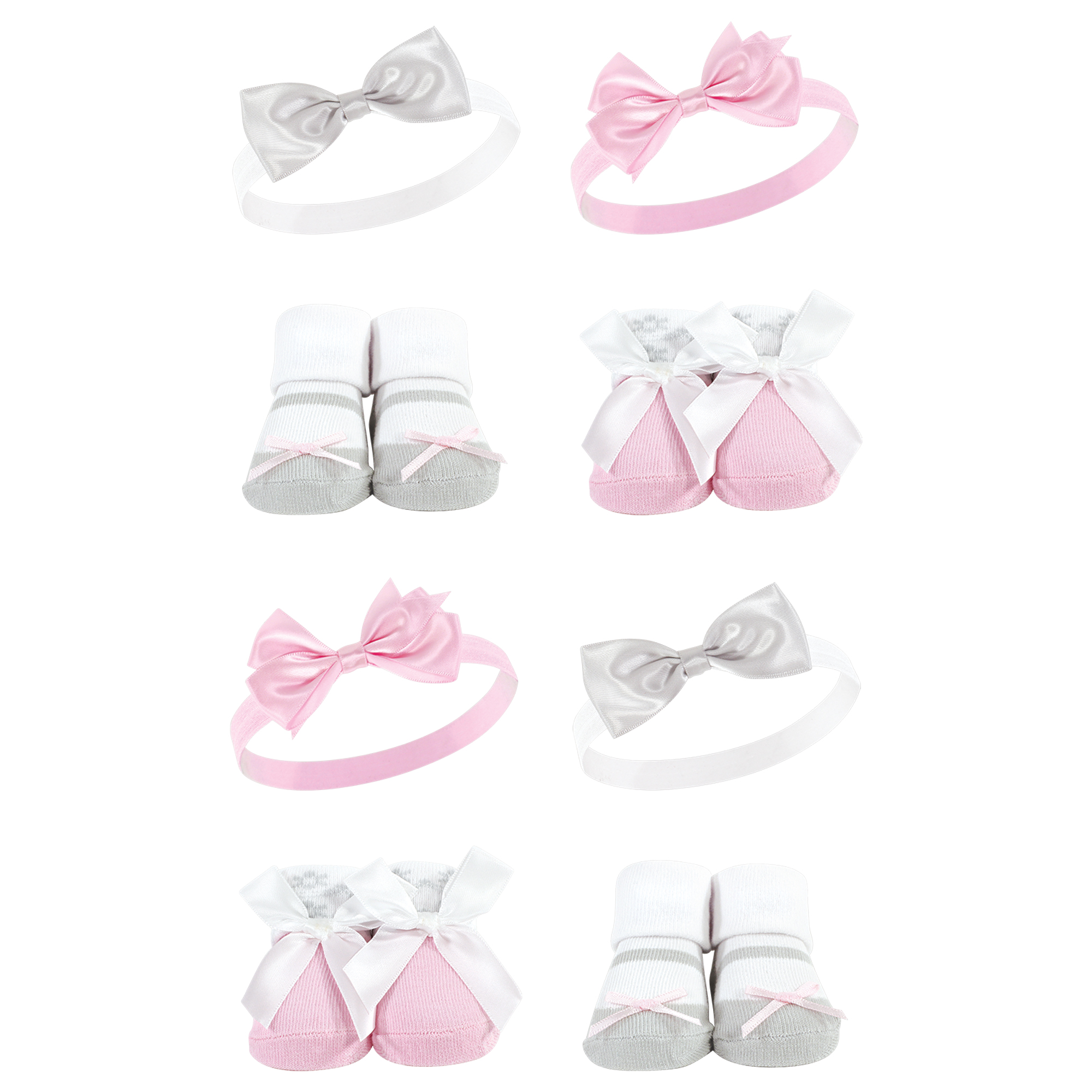 Hudson Baby 8Pc Headband and Socks Set, Pink Gray
