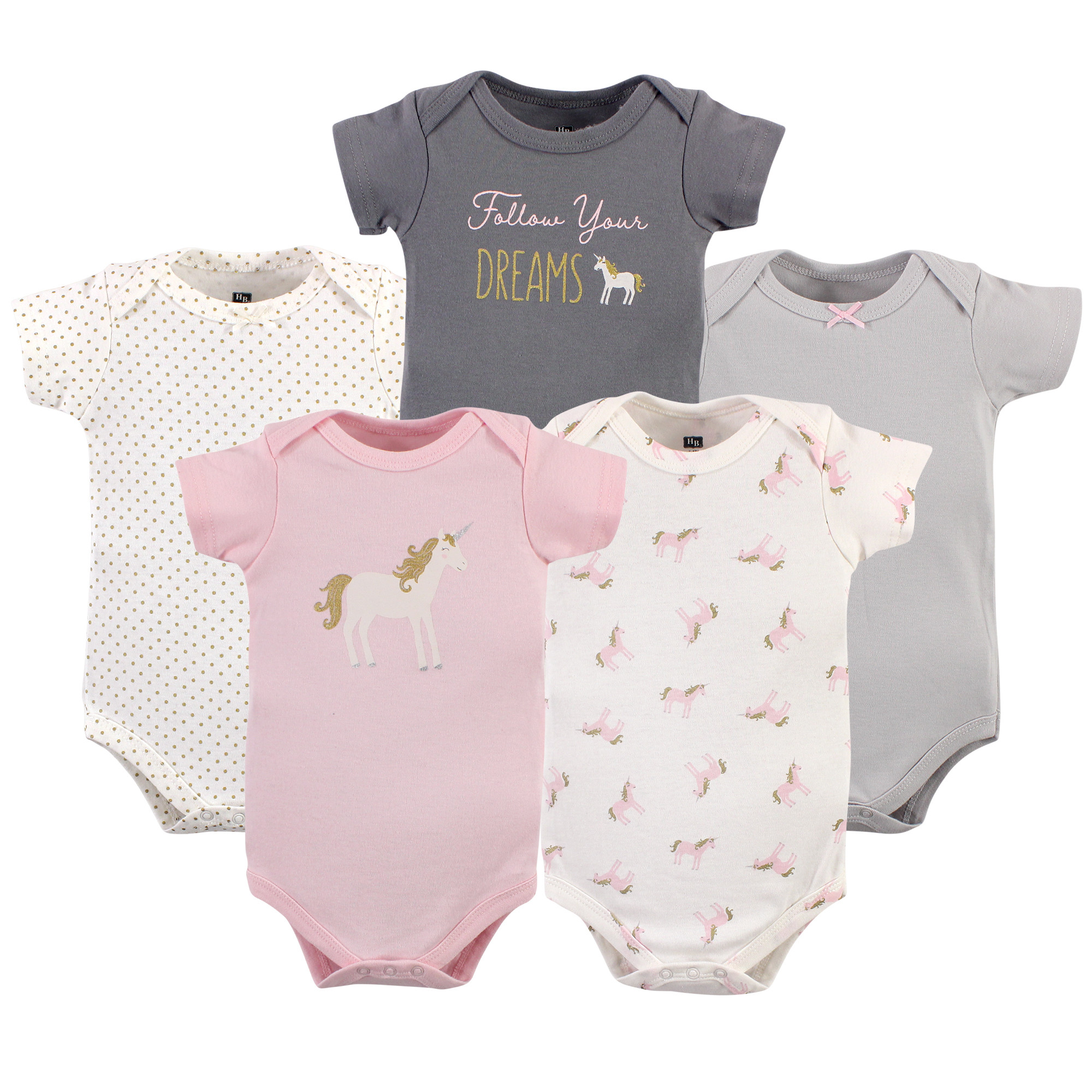 Hudson Baby Cotton Bodysuits, Gold Unicorn