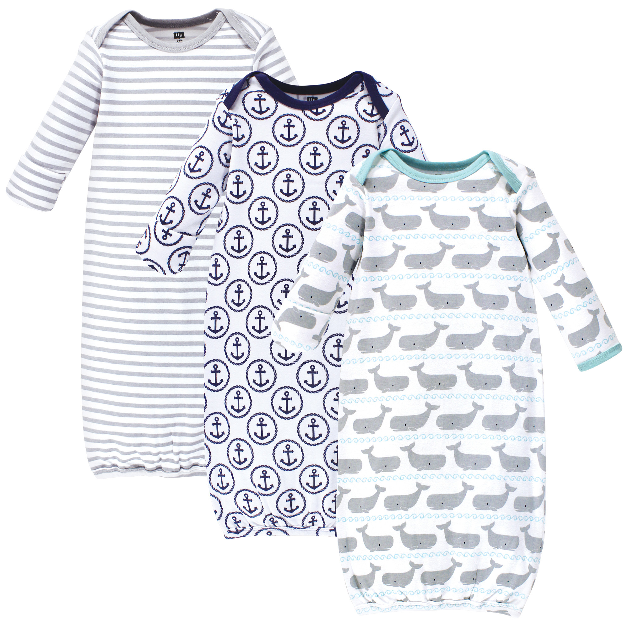 Hudson Baby Boy Cotton Gowns, Whales Anchor, Preemie/Newborn