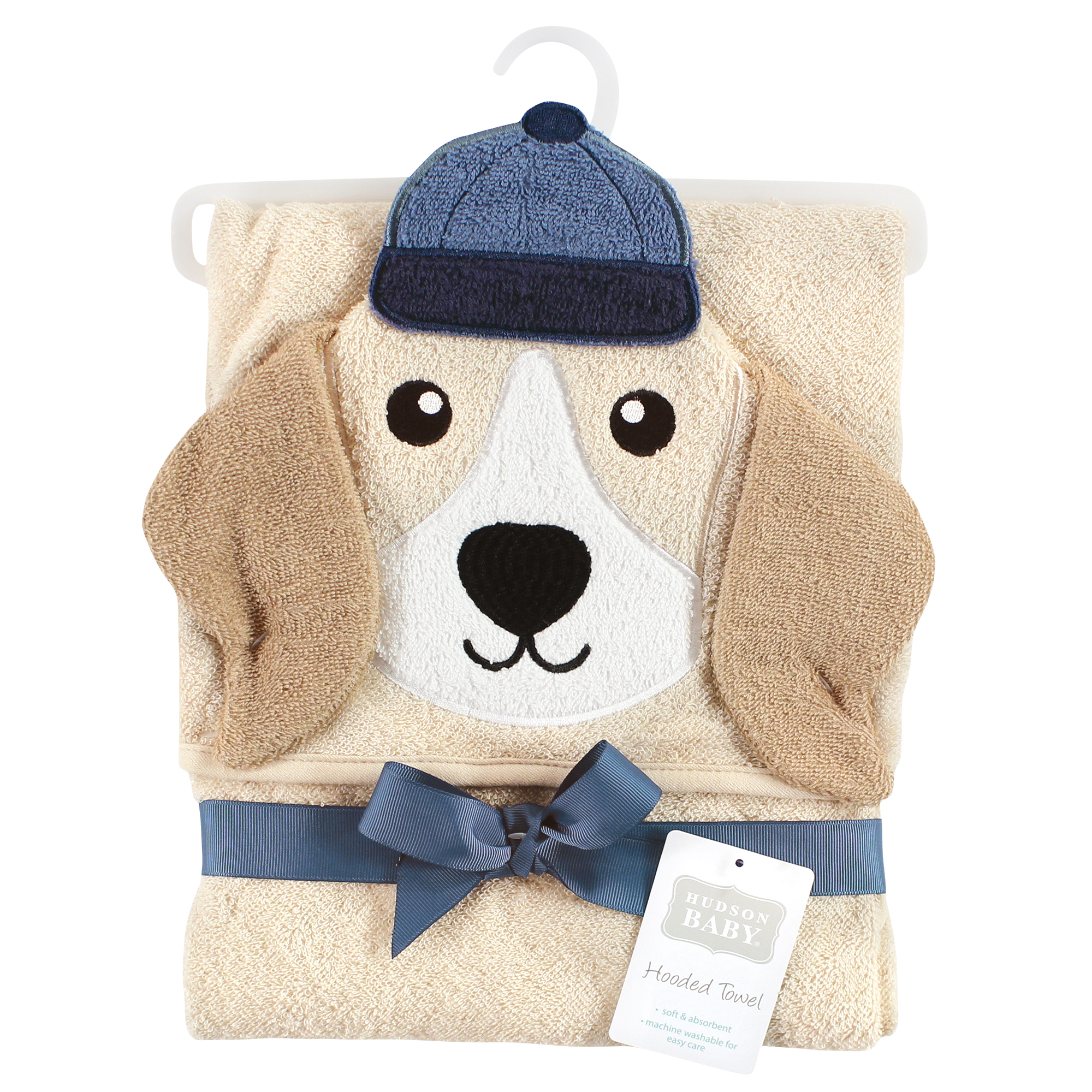 Hudson Baby Cotton Animal Face Hooded Towel, Baseball Dog