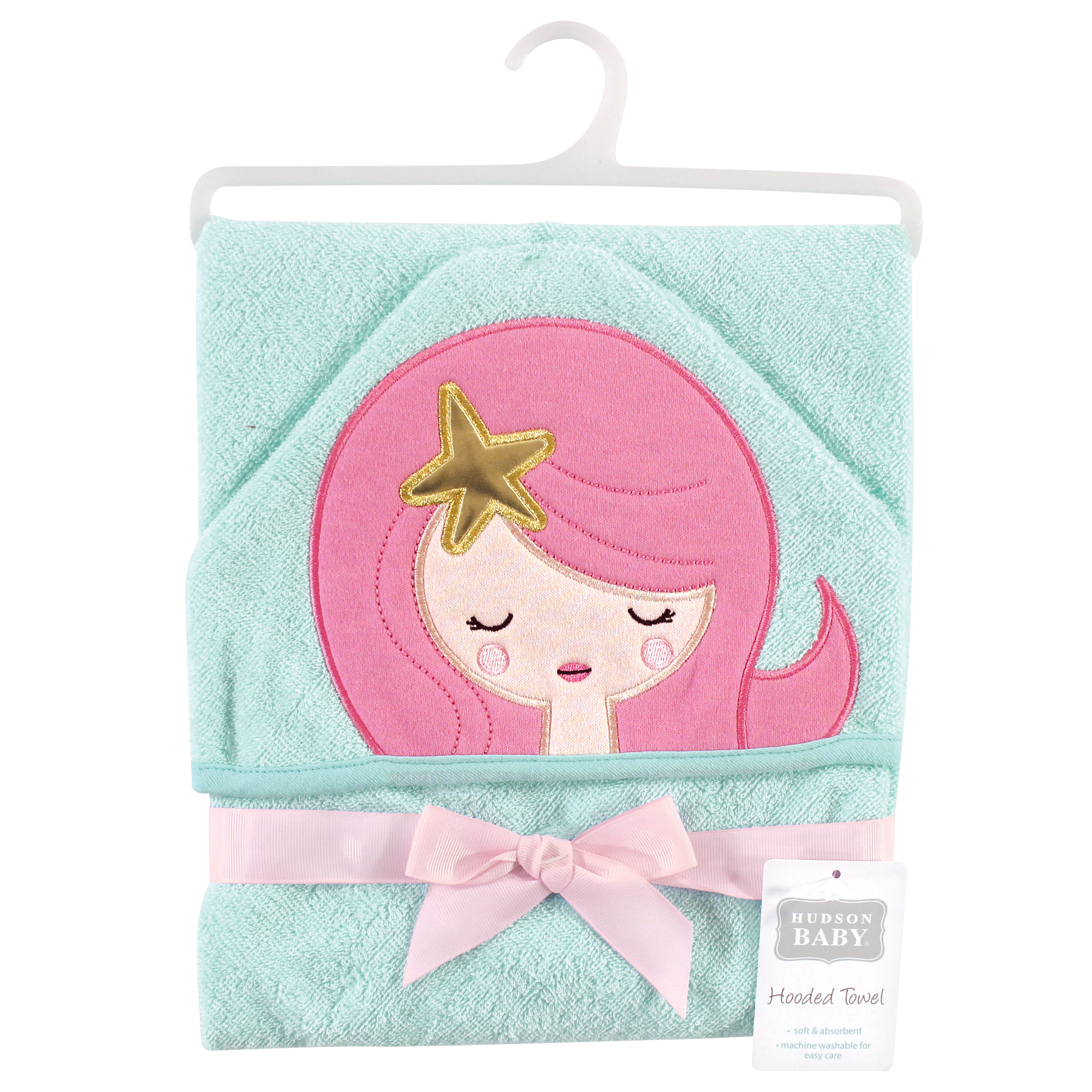 Hudson Baby Cotton Animal Face Hooded Towel, Mermaid