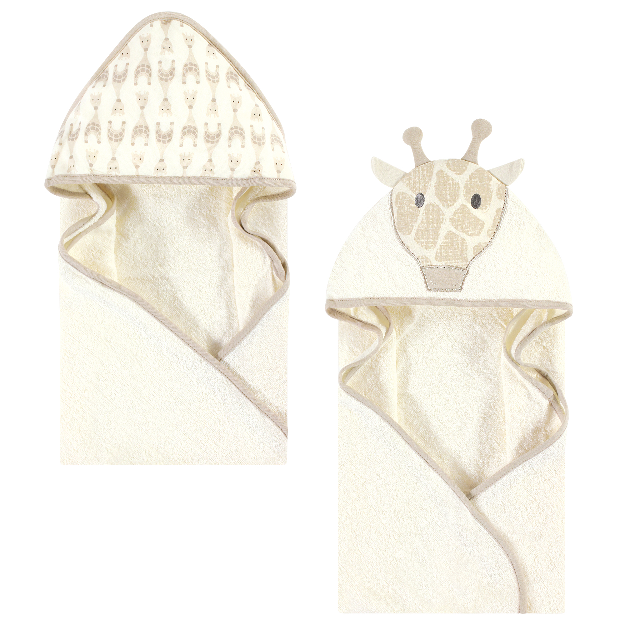 Hudson Baby Cotton Animal Face Hooded Towel, Modern Giraffe 2-Piece