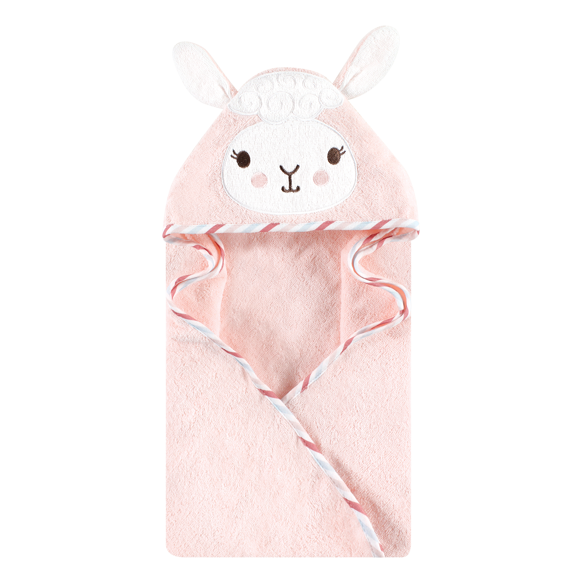 Hudson Baby Cotton Animal Face Hooded Towel, Pink Llama
