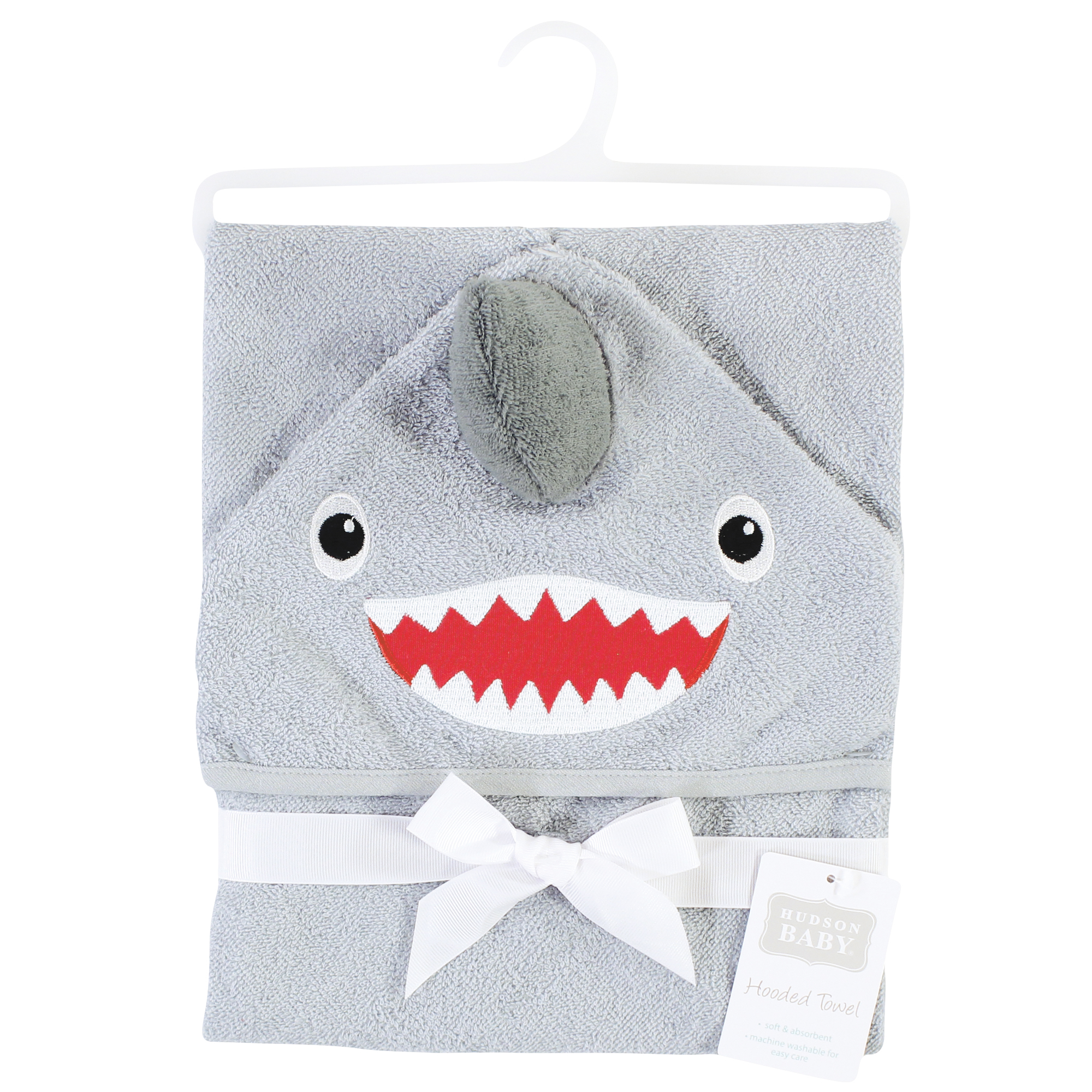 Hudson Baby Cotton Animal Face Hooded Towel, Shark