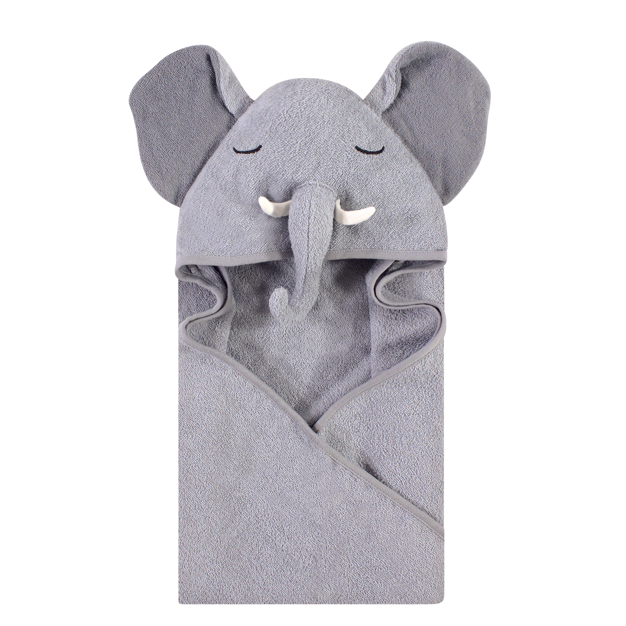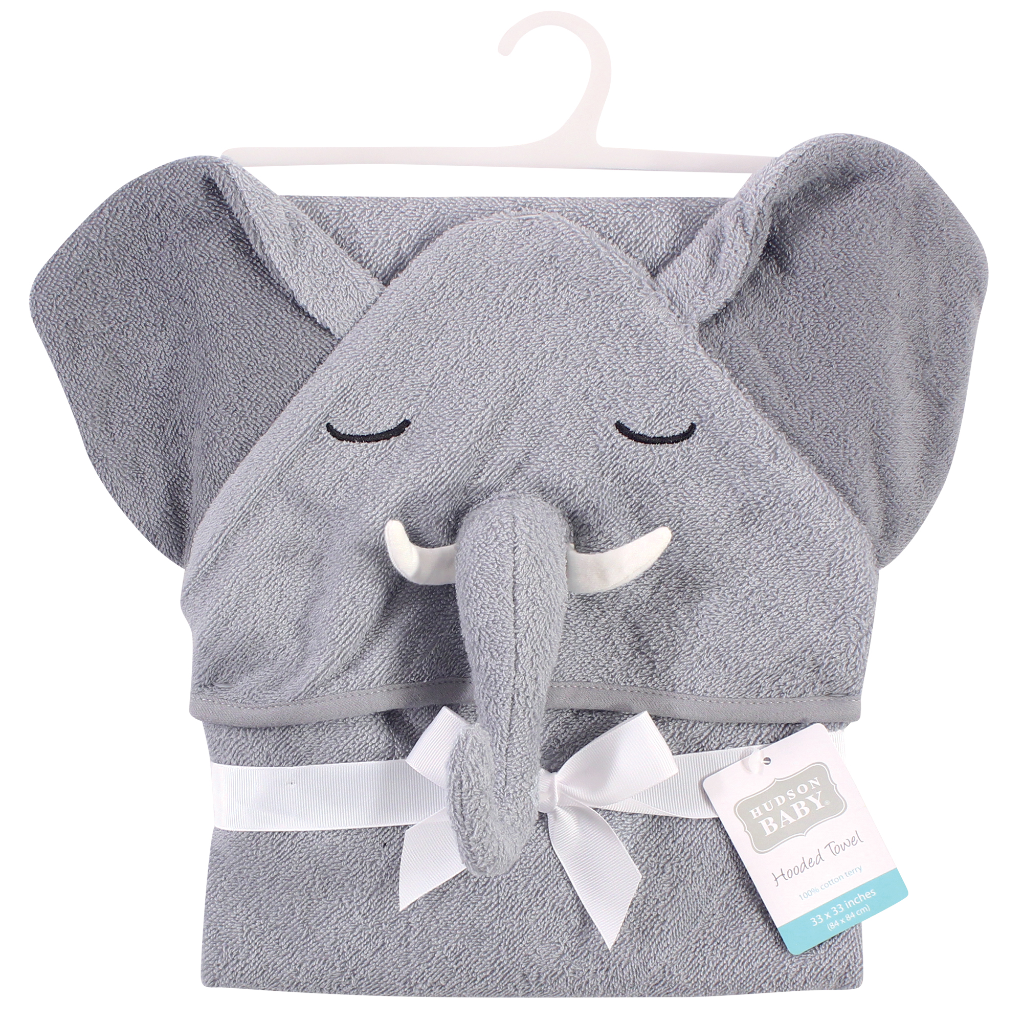 Hudson Baby Cotton Animal Face Hooded Towel, Tusks Elephant