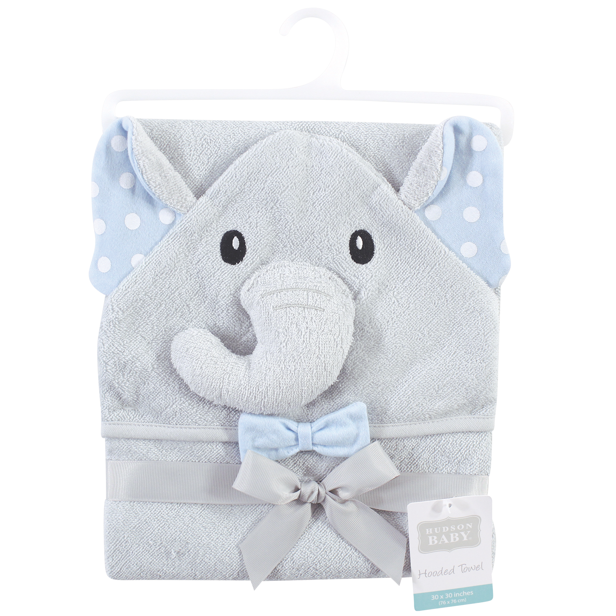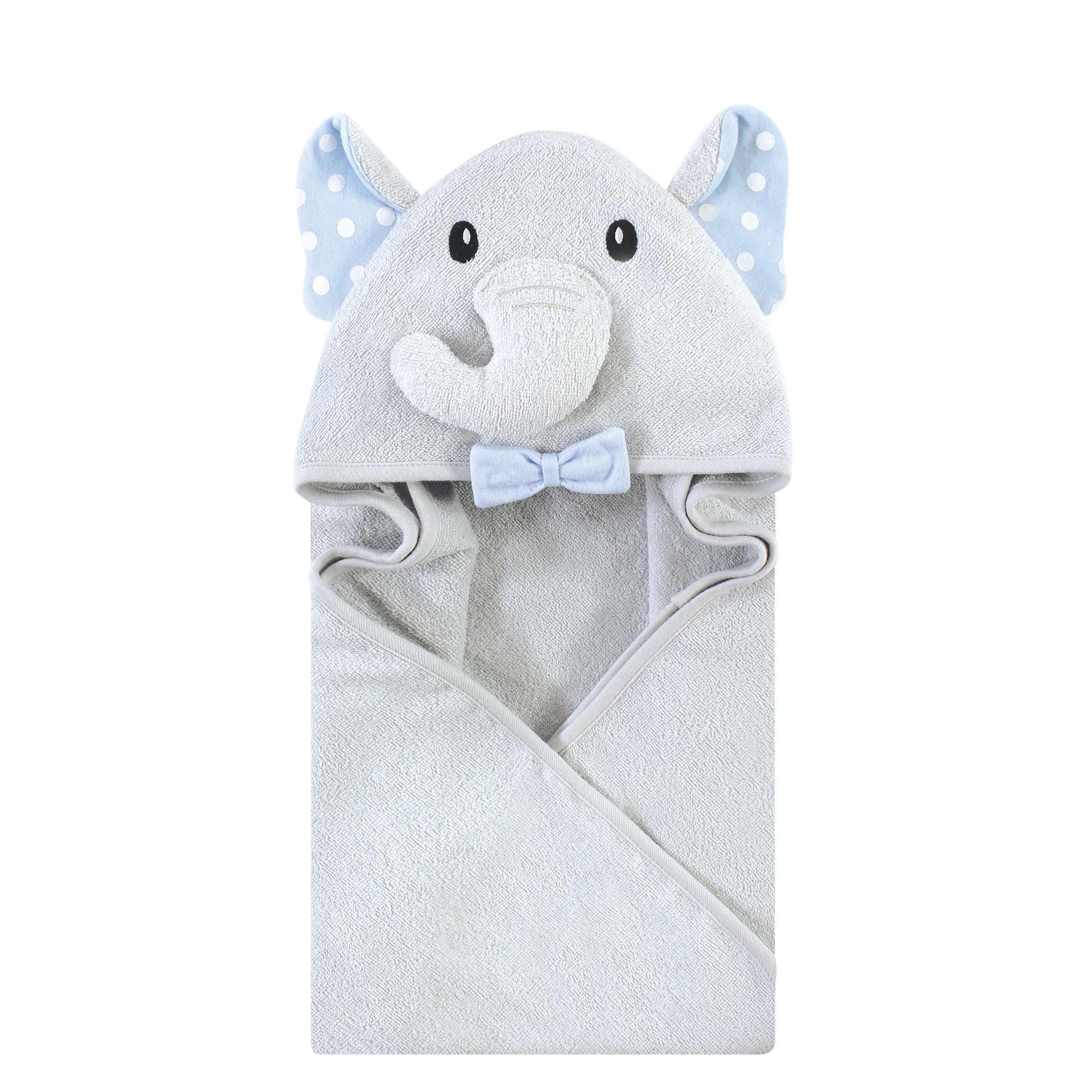 Hudson Baby Cotton Animal Face Hooded Towel, White Dots Gray Elephant