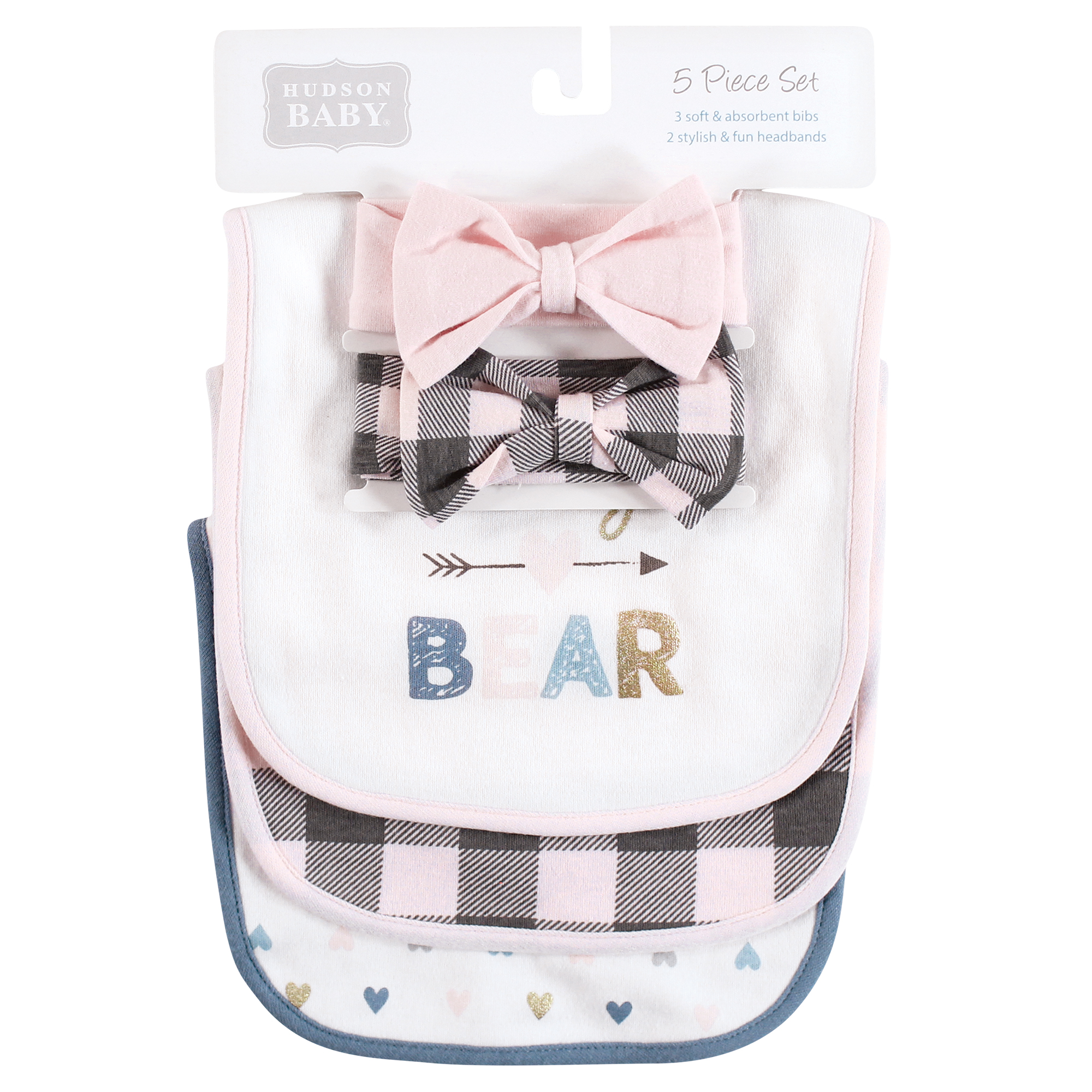 Hudson Baby Cotton Bib and Headband or Caps Set, Girl Baby Bear