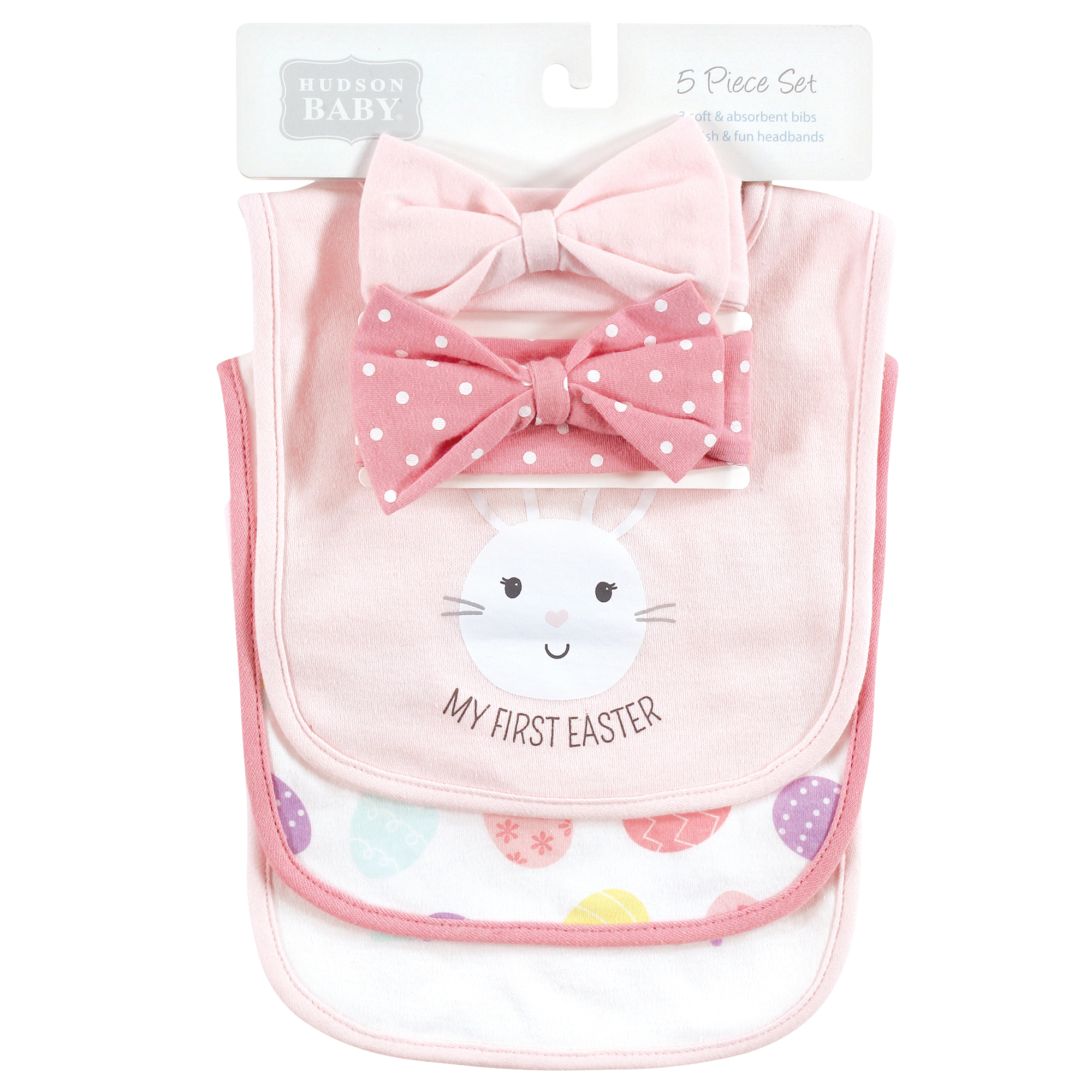 Hudson Baby Cotton Bib and Headband or Caps Set, Happy Easter