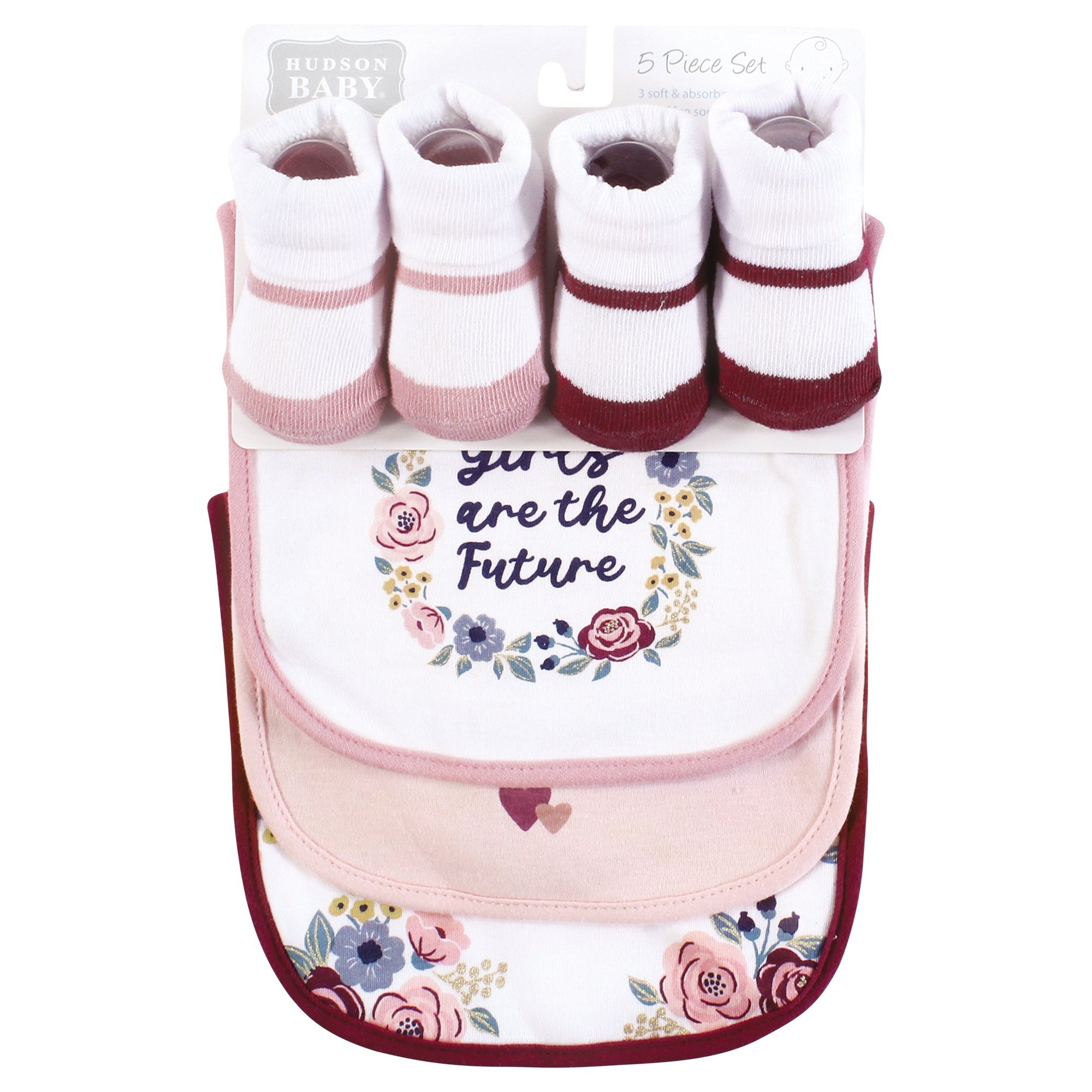 Hudson Baby Cotton Bib and Sock Set, Girls World